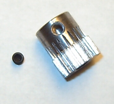 1x Stahl-Zahnrad Modul 0,5 20 Zähne, Bohrung 5,0mm, 1 Stiftschraube M3. 213977.