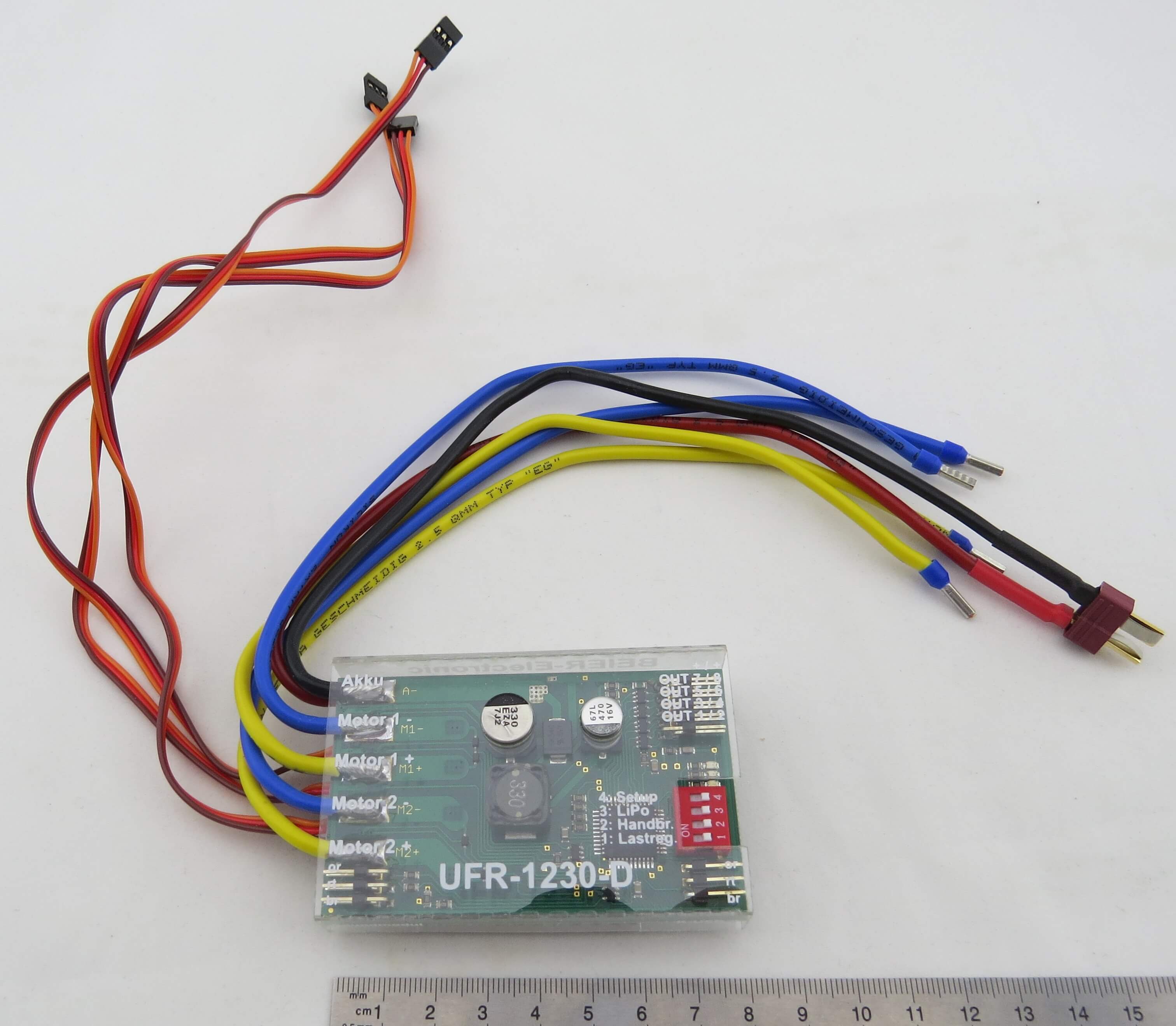 Fahrtenregler für ZWEI Gleichspannungs-Bürstenmotor. Speziell für Kett enfahrzeuge/Schiffe entwickelt. Leistungsstarkes BEC mit 5,6V 3A.