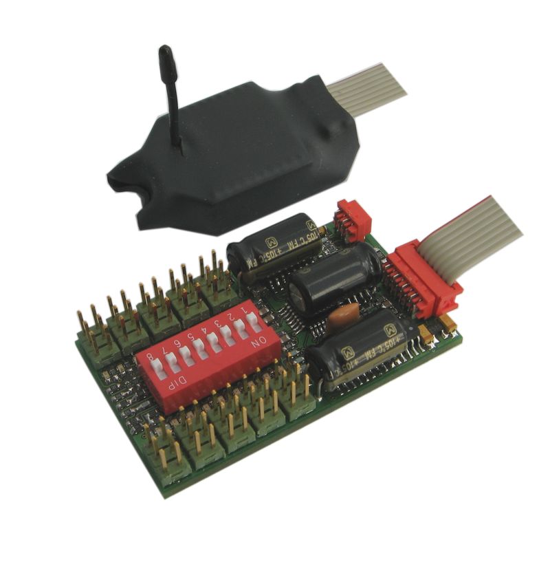 2,4GHz Empfänger mit getrenntem 18Kanal- Decoder. Unterstützt bis zu 2 Multi- switch oder Multiprop-Module. Servo- ausgänge ferngesteuert an/abschaltbar.