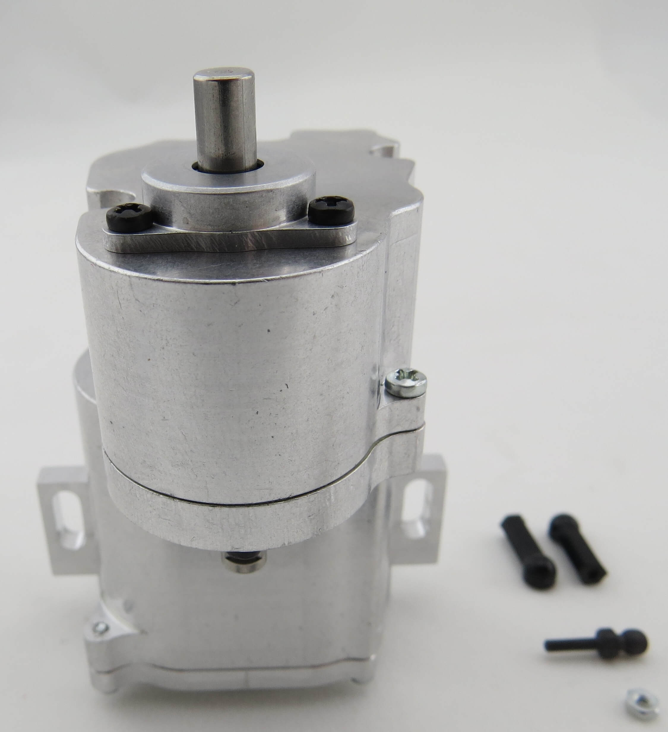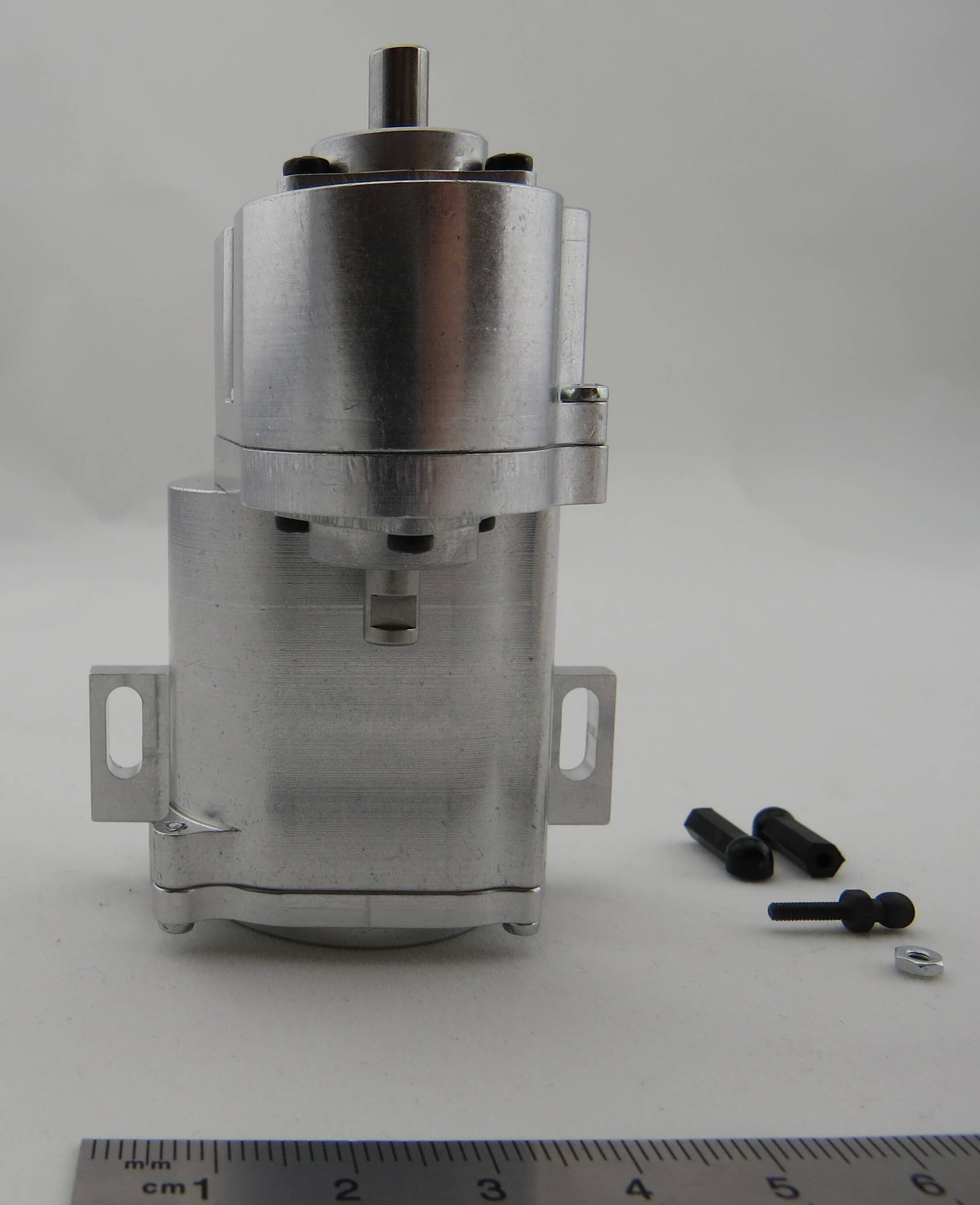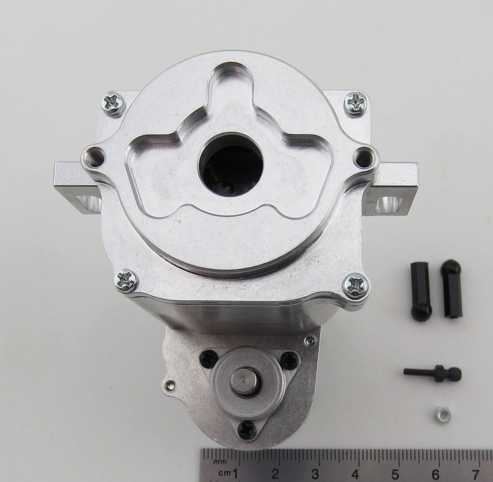 Das integrierte selbsperrende Differential gleicht Drehzahlunterschiede aus. Die Gänge werden über ein Servo geschaltet. Die maximal zulässige Eingangsdrehzahl beträgt 6.500 U/min.