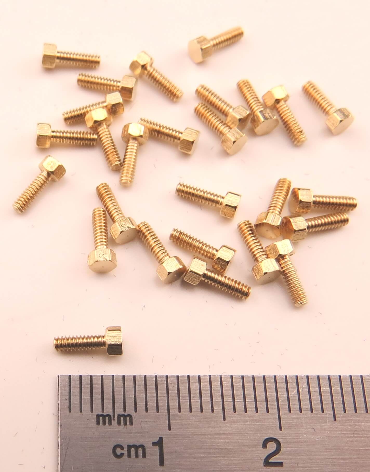6-kant-Modellschraube M1,6x5 aus Messing, 25 Stück/Packung.