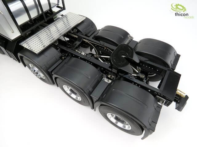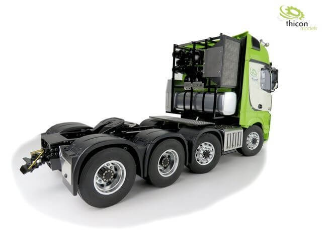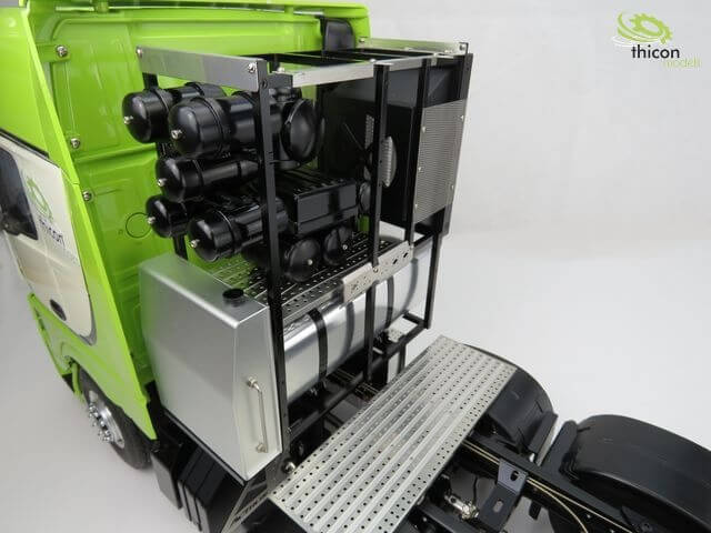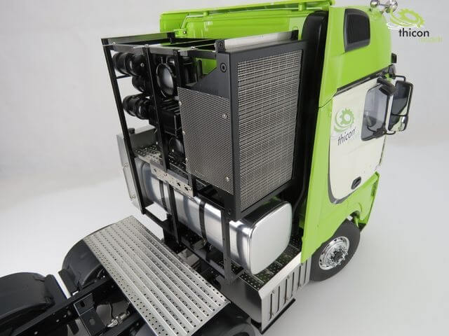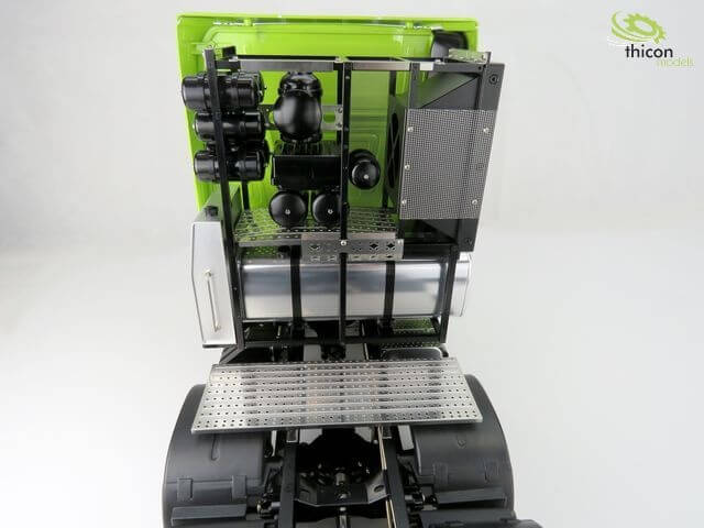 Bis auf die Kotflügel ist alles aus massivem Matall CNC-gefertigt. Vor allem die Details, wie der originalgetreue Mercedes-Auspuff oder der Harnstofftank sind ein Highlight.