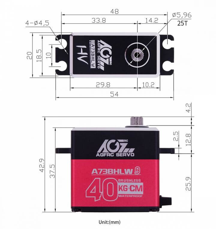 AGF-RC A73BHLW V2 Digitalservo mit Kugellagern.Maße: 40x20