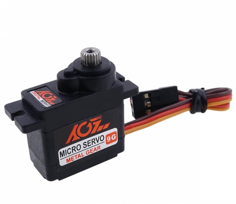 AGF-RC B9DLM Digitalservo mit Kugel- lager. Maße: 23 x 12,0 x 21,4mm. Gewicht: 11 gr. Mini-Digitalservo.