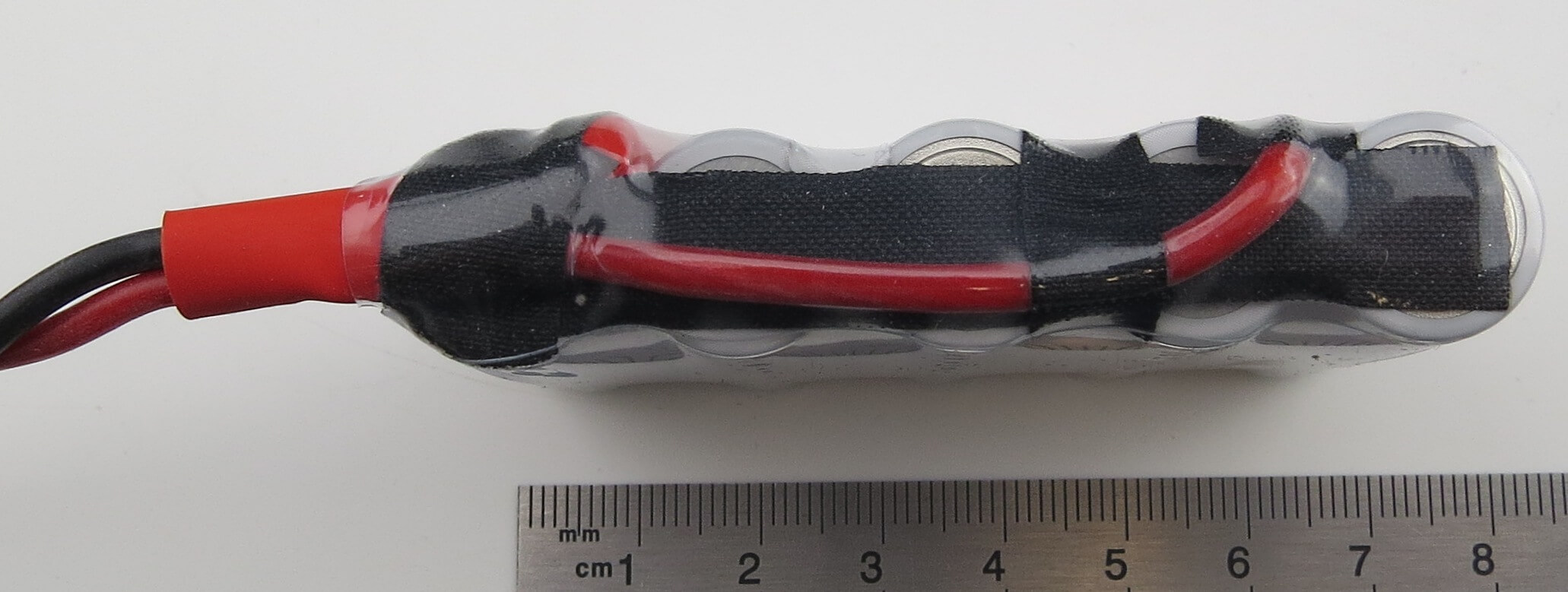 1 Akku-Pack mit 5x Sanyo ENELOOP, 6,0V 5 Zellen, 2000mAh NiMH mit offenen Enden je 12cm Silikon-Kabel 1,5qmm rot/schwarz ca. 144gr. 71x53x15mm über alles. R5x1