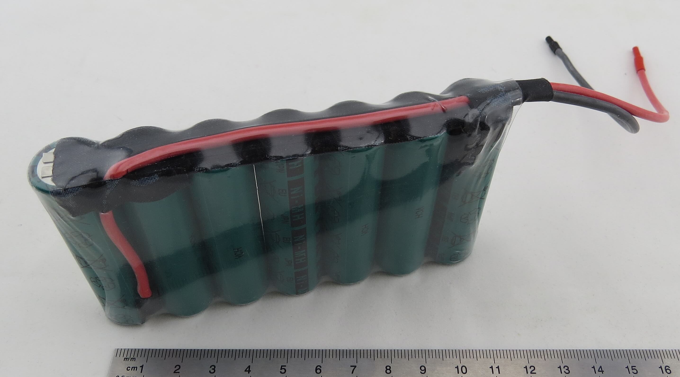 Akku-Pack mit 7x Sanyo-Zellen 4/3AU, 7 Zellen, 8,4V 4000mAh NiMH, offene Enden je 12cm Silikon-Kabel. F1x7-Form. ca. 370gr. 118X70x18mm über alles.