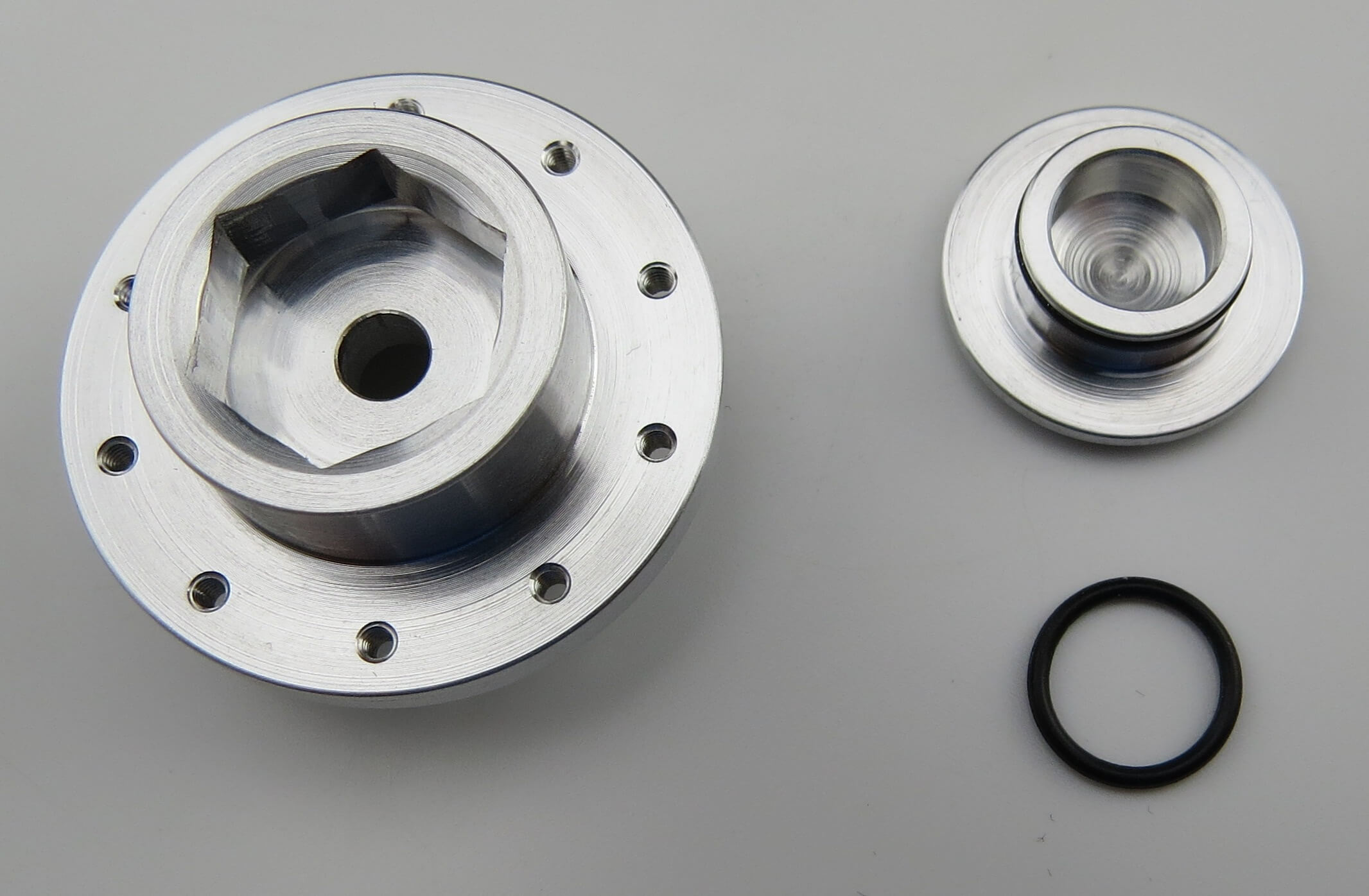 1x Alu-Nabe passend für angetriebene Lenkachsen mit Sechskant SW12. Für die V wendung v. Felgen mit 25mm-Lochkreis! Mit 1 Nabendeckel (Alu) mit O-Ring- Befestigung.
