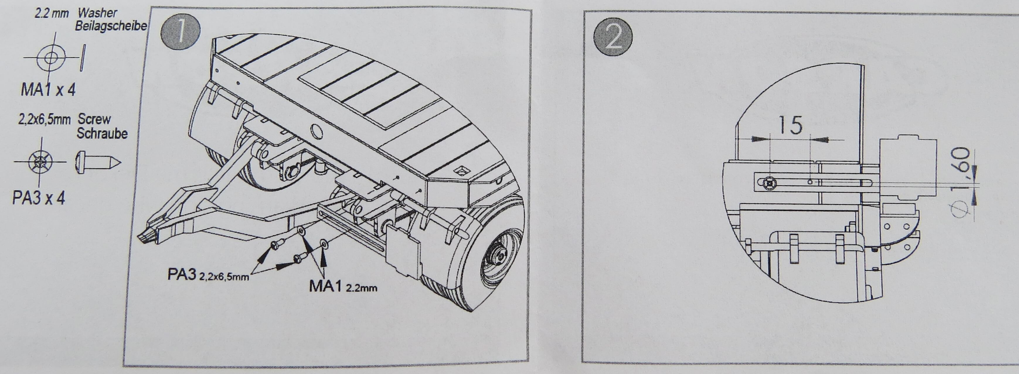 2 Aluminium-Warntafeln mit integriertem Halter, Warndekor, Befestigungs-Schrauben.