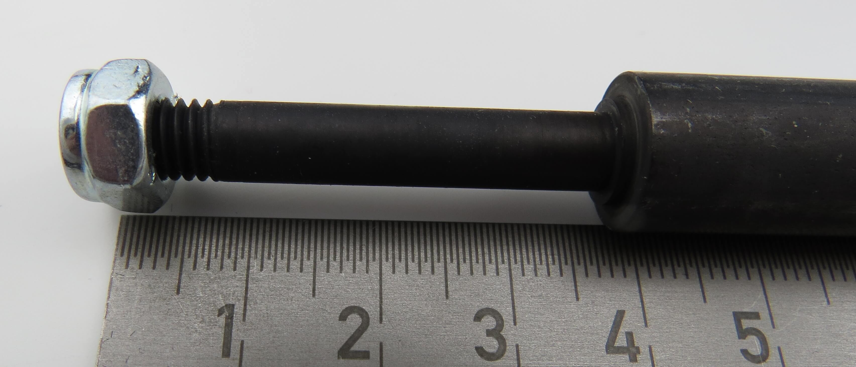 Anhängerachse 1:8, Stahl. Für Doppel- Bereifung. 12mm Rundstahl mit 6mm Bund und M6-Gewinde. Breite 292mm. (220906)