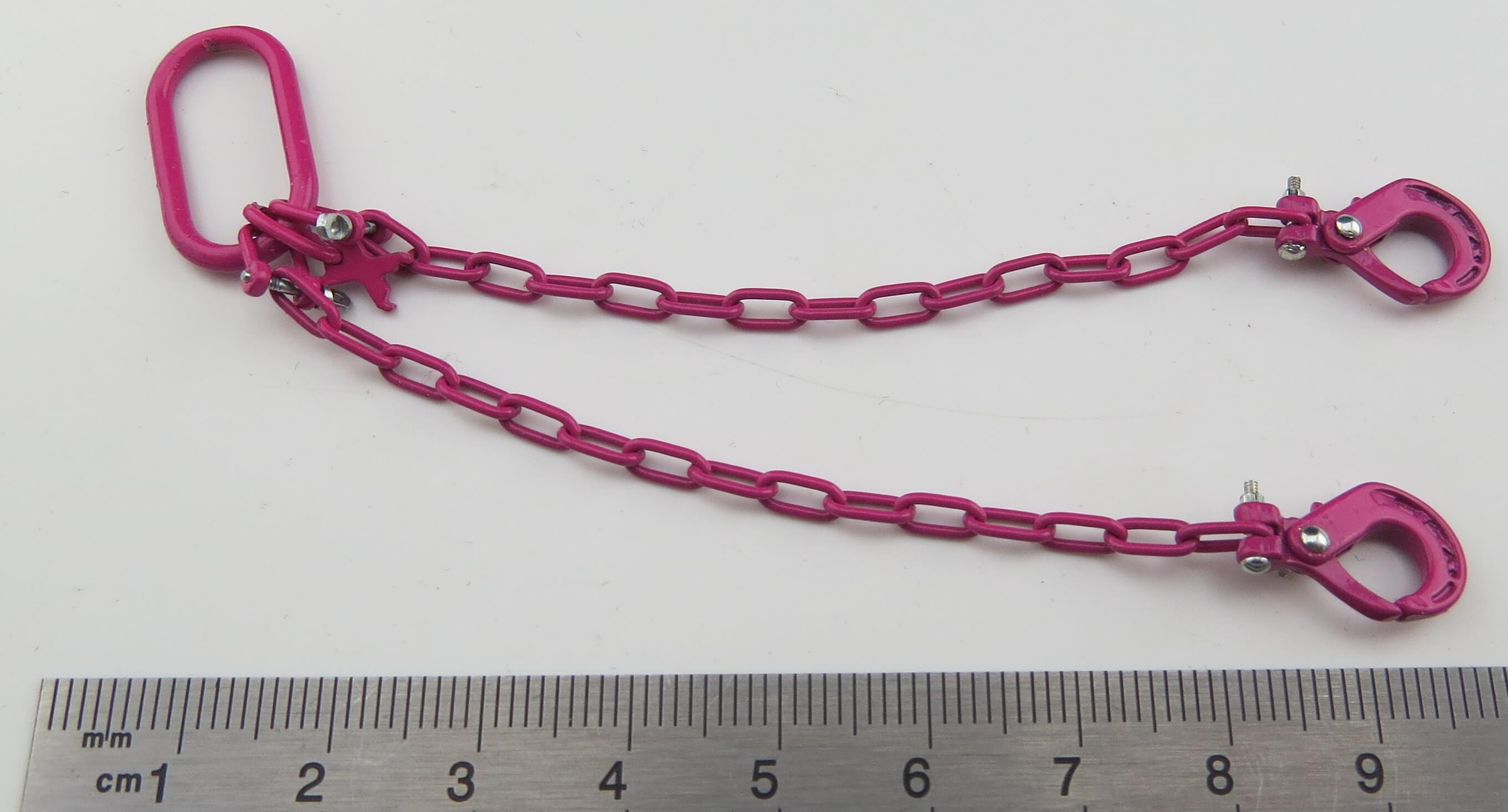 Anschlagkette RUD 2 Strang. Pink. Mit funktionierendem Klapphaken, Ketten, Schraubschäkel und grosser Anschlagöse. Länge ca. 105mm Nutzlänge. 1 Stück.