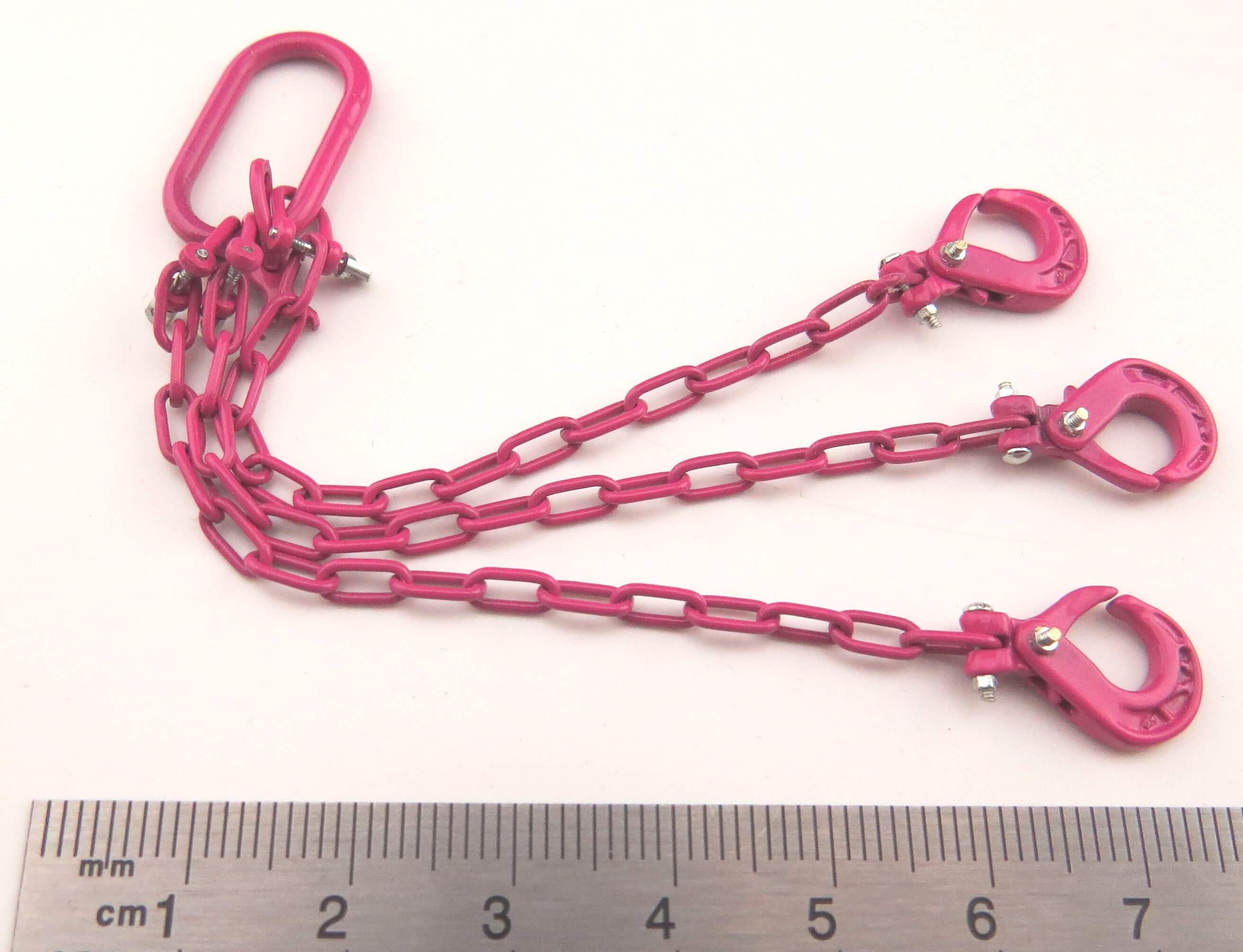 Anschlagkette RUD 3 Strang. Pink. Mit funktionierendem Klapphaken, Ketten, Schraubschäkel und grosser Anschlagöse. Länge ca. 105mm Nutzlänge. 1 Stück.