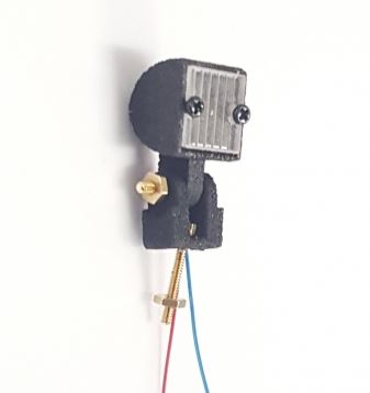 1x Gehäuse schwarz, unlackiert, ca. 8 x 8 x 6mm. 1x Halter, schwarz, unlackiert 1x Scheibe, farblos 2x Kreuz-Schraube 1x3mm 2x Sechskant-Schraube M1x8mm 2x Muttern M1 1x SMD-LED 0603, weiss, mit angelöteten Litzen 1x Widerstand 470 Ohm für 7,2V