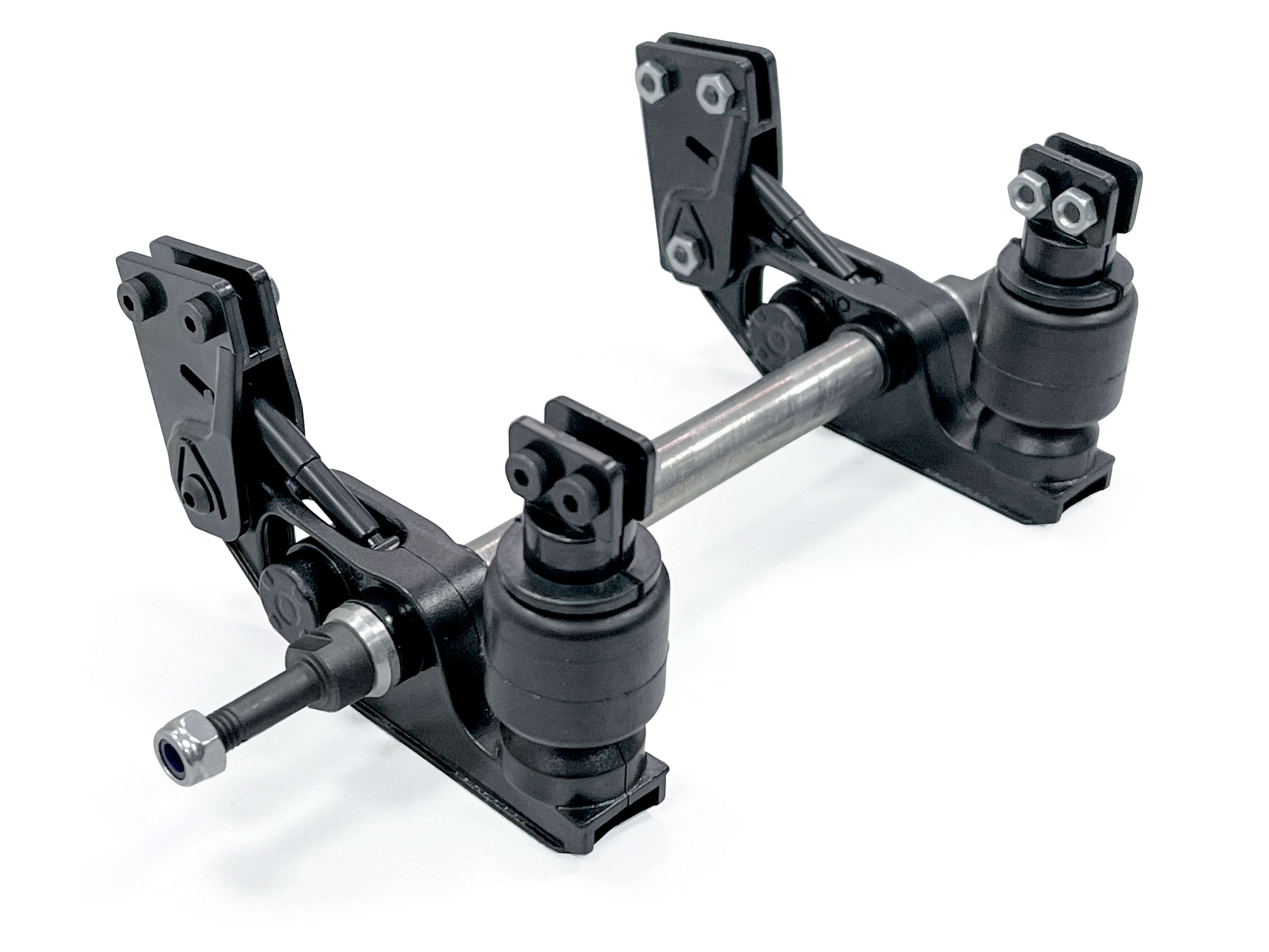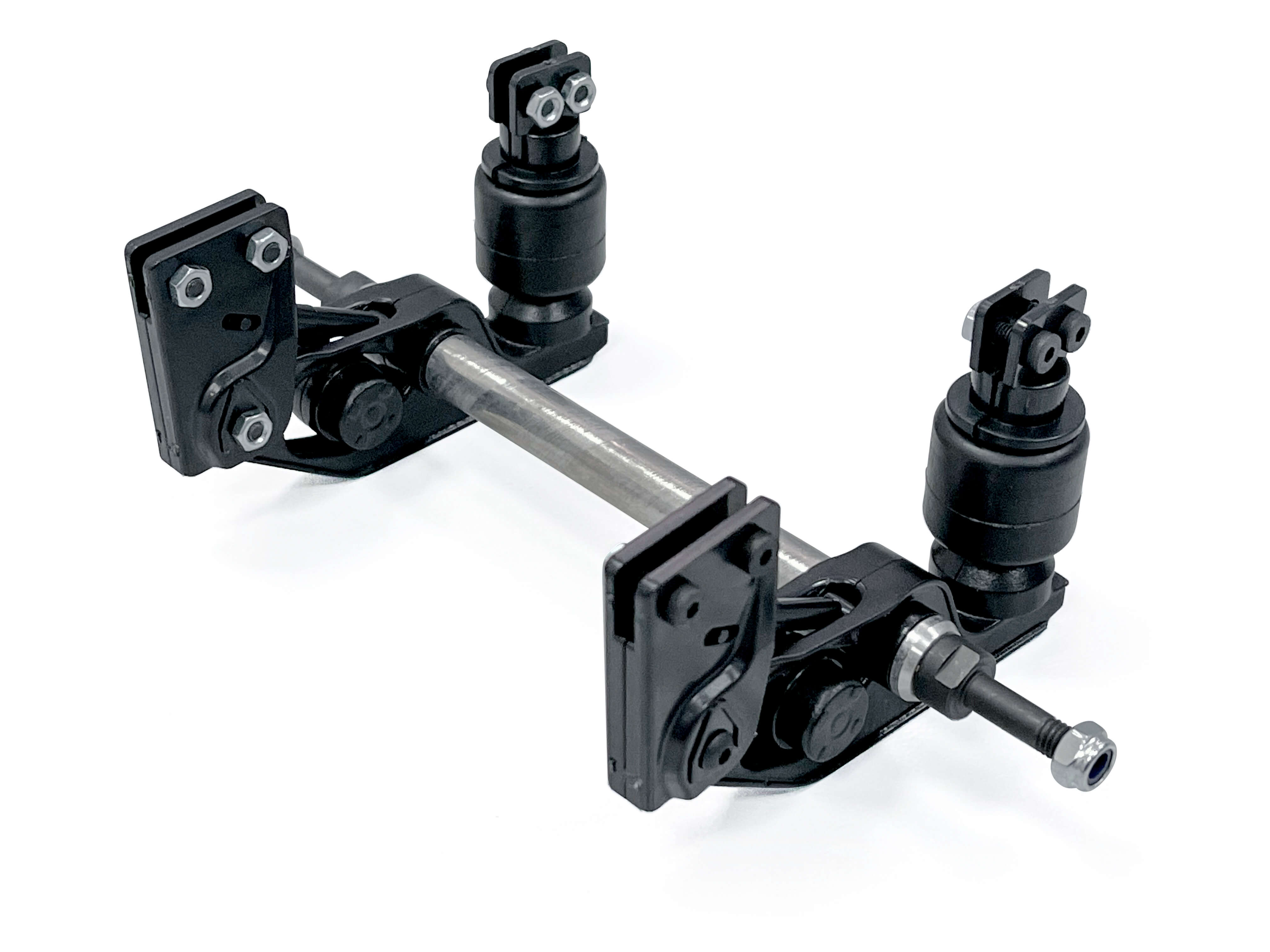 Die neue Generation der CARSON Aufliegerachsen mit Luftfederattrappen und Höherlegung.
