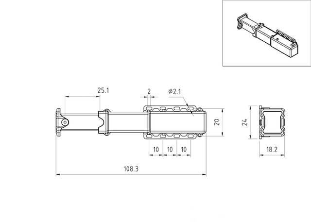 Länge ausgefahren: 108mm Hub: 25mm Breite: 24mm Tiefe: 18mm Belastung pro Stütze max. 5000g!