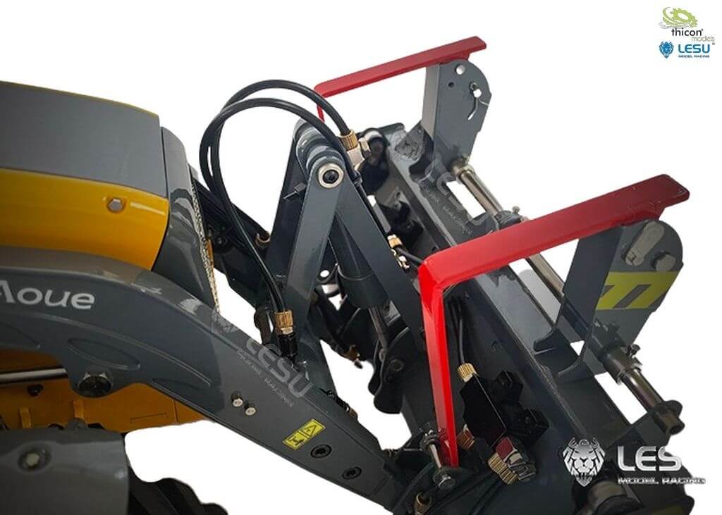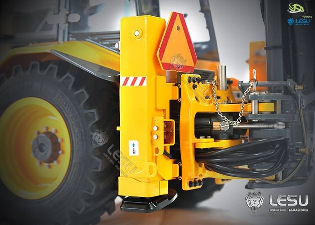 Natürlich ist der Baggerlader komplett aus Metall gefertigt und kommt fertig aufgebaut und lackiert mit Sound, Licht und Hydrauik.