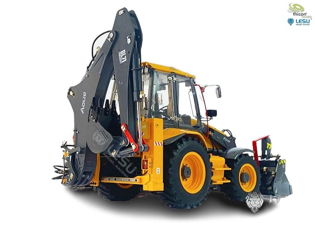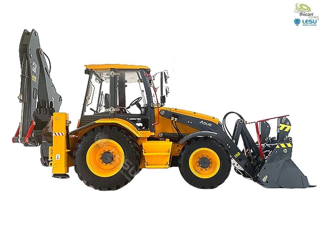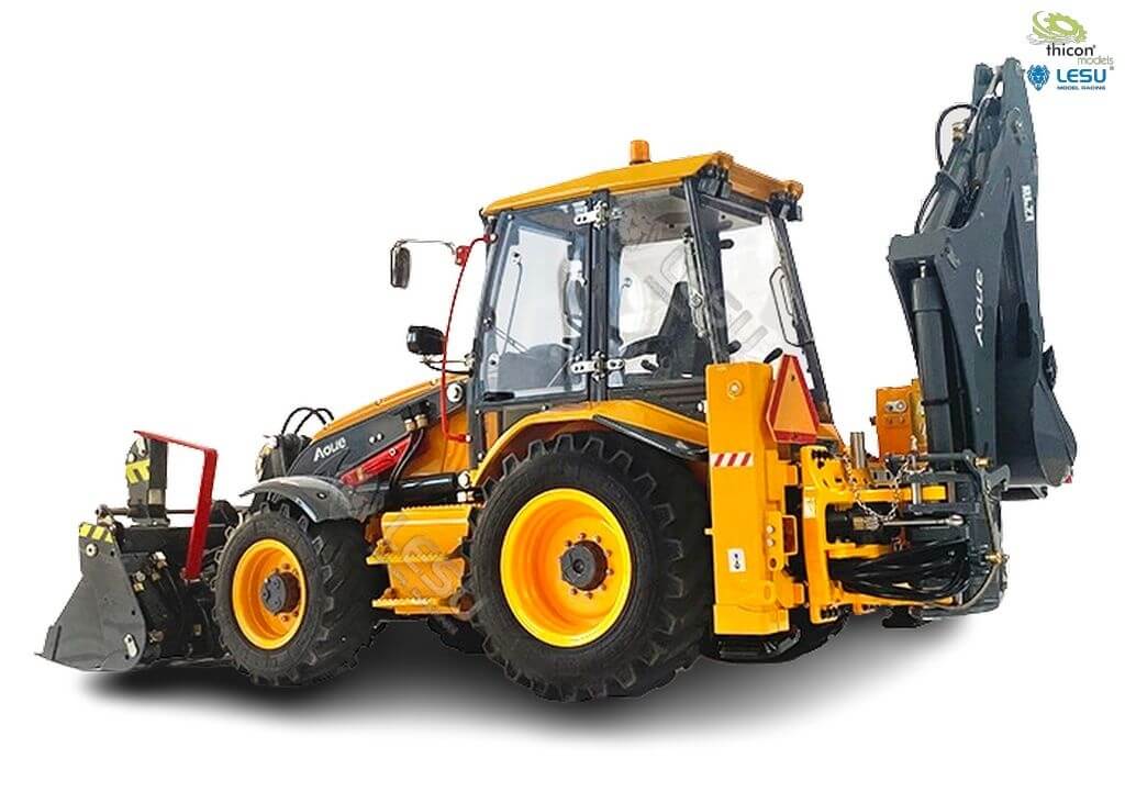 Baggerlader fertig aufgebaut und lackiert in gelb/grau, Hydraulikanlage, Soundmodul und Lichtanlage mit LEDs.