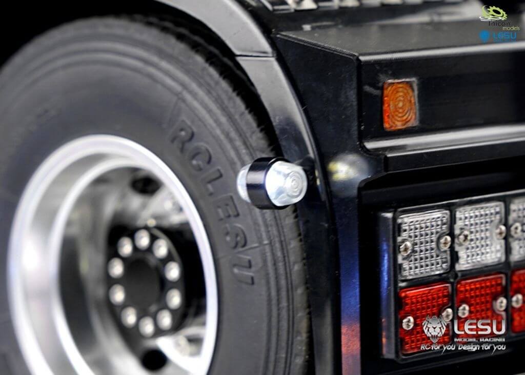 Begrenzungsleuchten seitlich, mit Lichtkappen in rot/weiss/gelb, mit LEDs. Vorwiderstände liegen bei.