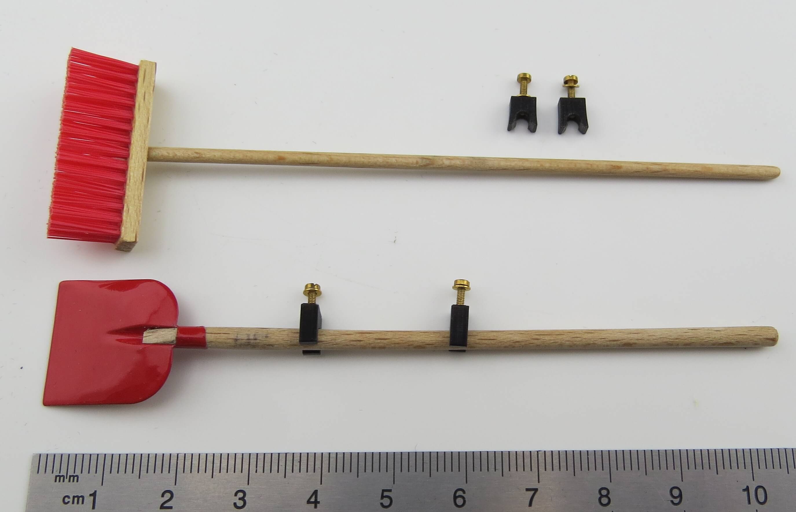 Besen (rot) und Holsteiner Schaufel (rot). Je ca. 11 cm lang.