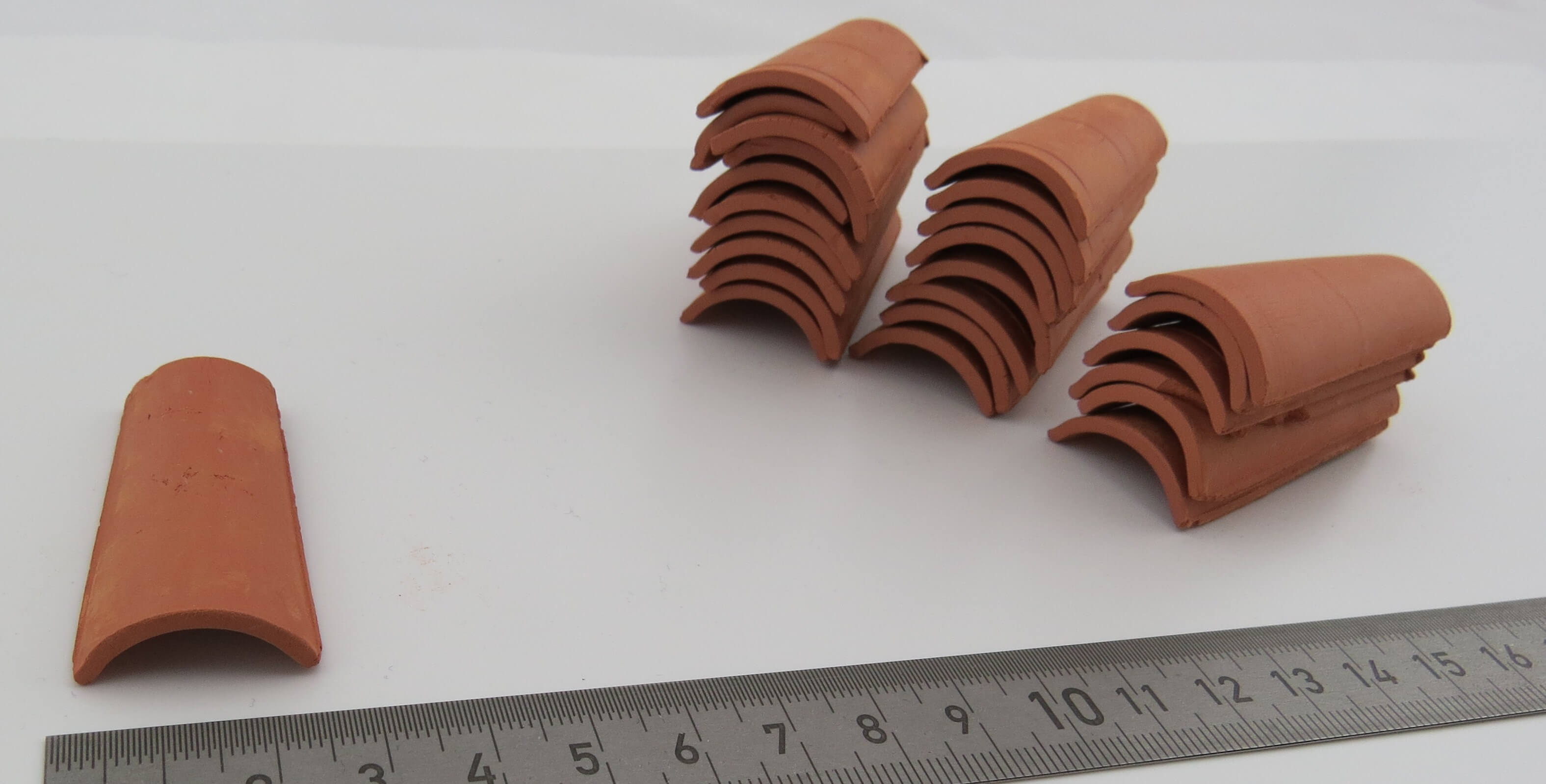 1x Beutel Dachpfanne 5,0x2,2cm, rot, Dachpfanne 'Mönch und Nonne'. Beutel mit 25 Stück. *AUSLAUFARTIKEL!* Nachfolgeartikel: 3329