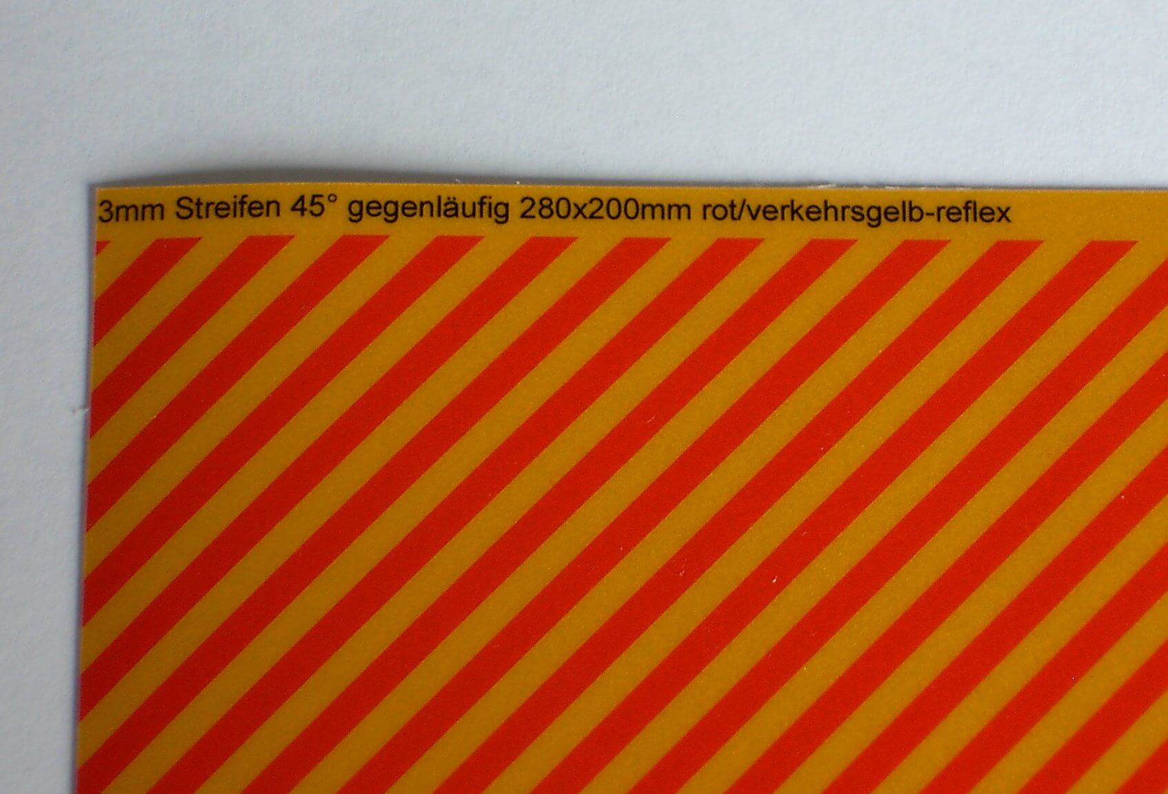 Dekorbogen Warnstreifen reflektierend ca. 200x280mm 3mm-Streifen, 45° li/re. rot/verkehrsgelb-reflektierend selbstklebend