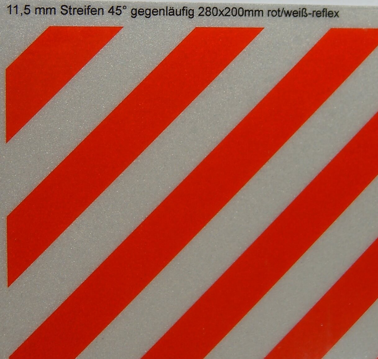 Dekorbogen Warnstreifen reflektierend ca. 200x280mm 11,5mm-Streifen,45° li/re. rot/weiß-reflektierend selbstklebend.
