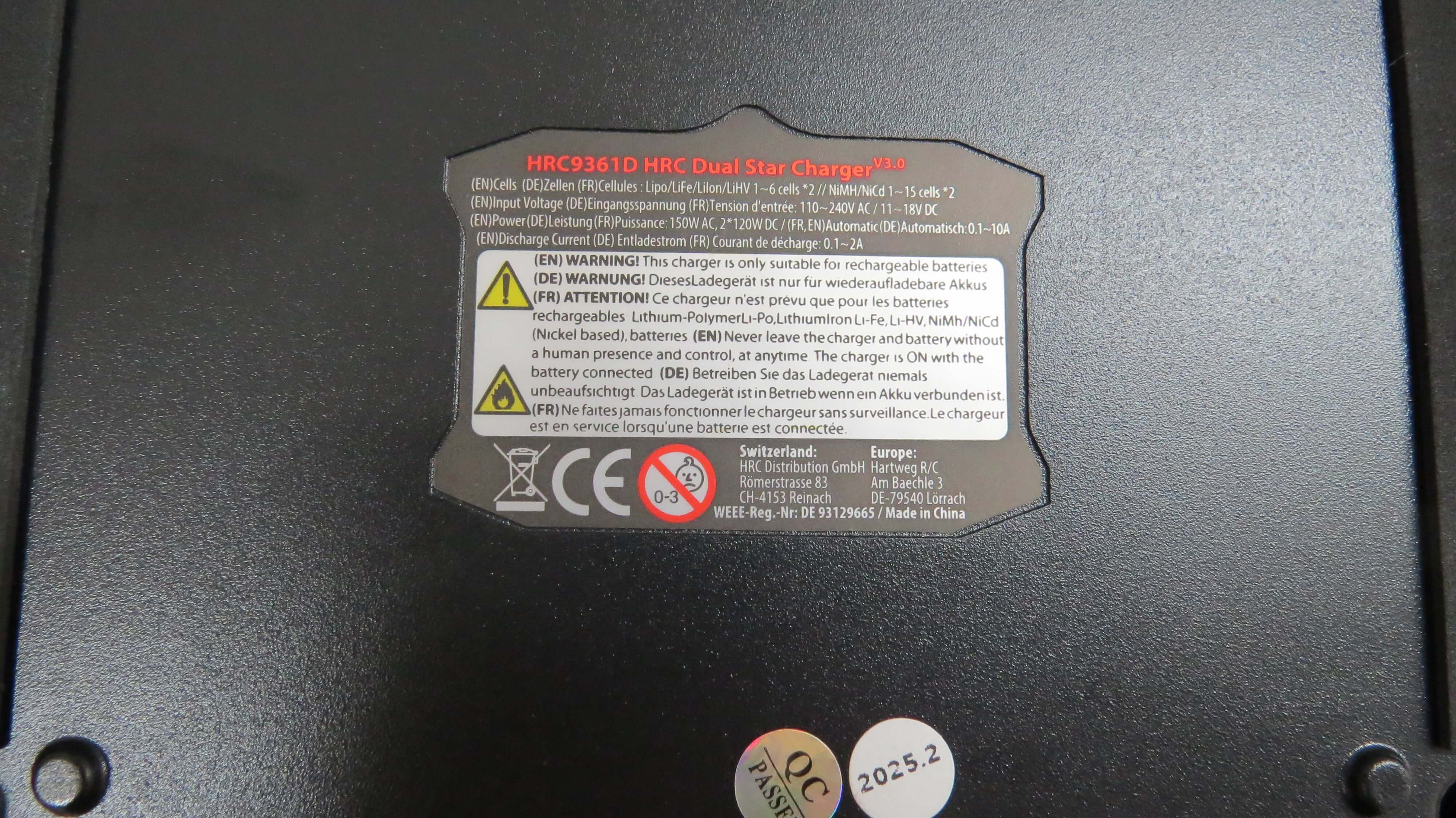Duo-Ladegerät HRC9361D 2x 120W, 230V AC/12V DC. Mit Netzanschlußkabel, DC-Anschlußkabel, Balancer-Adapterplatin en.