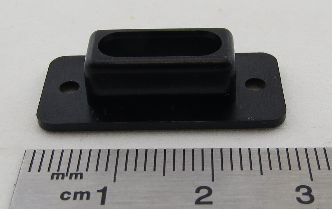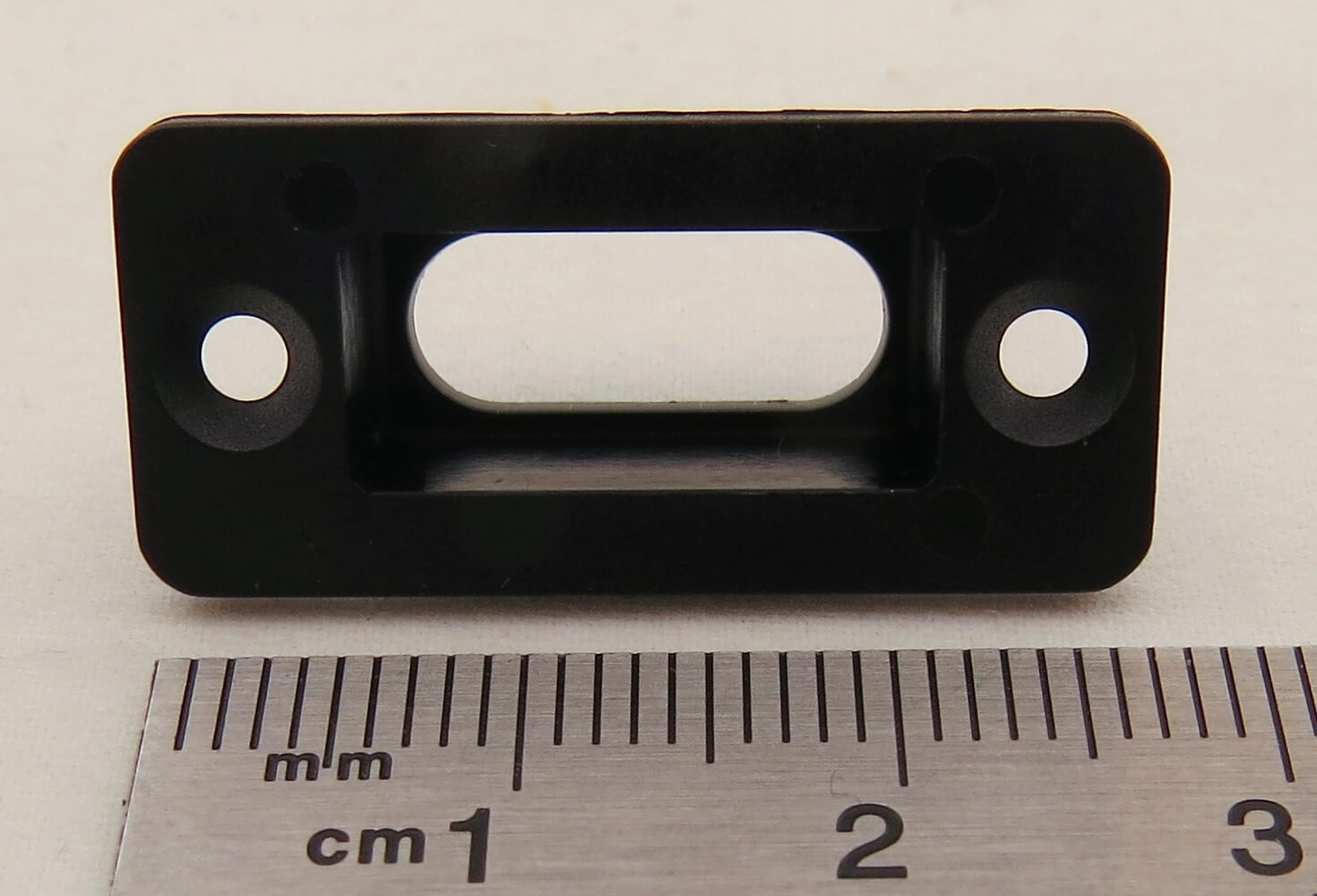 1x Einbaurahmen für Hochstromstecker oder Hochstrombuchse. Kunststoff, schwarz. Kurze Ausführung. 7mm. Lieferung erfolgt ohne Stecker oder Buchse.
