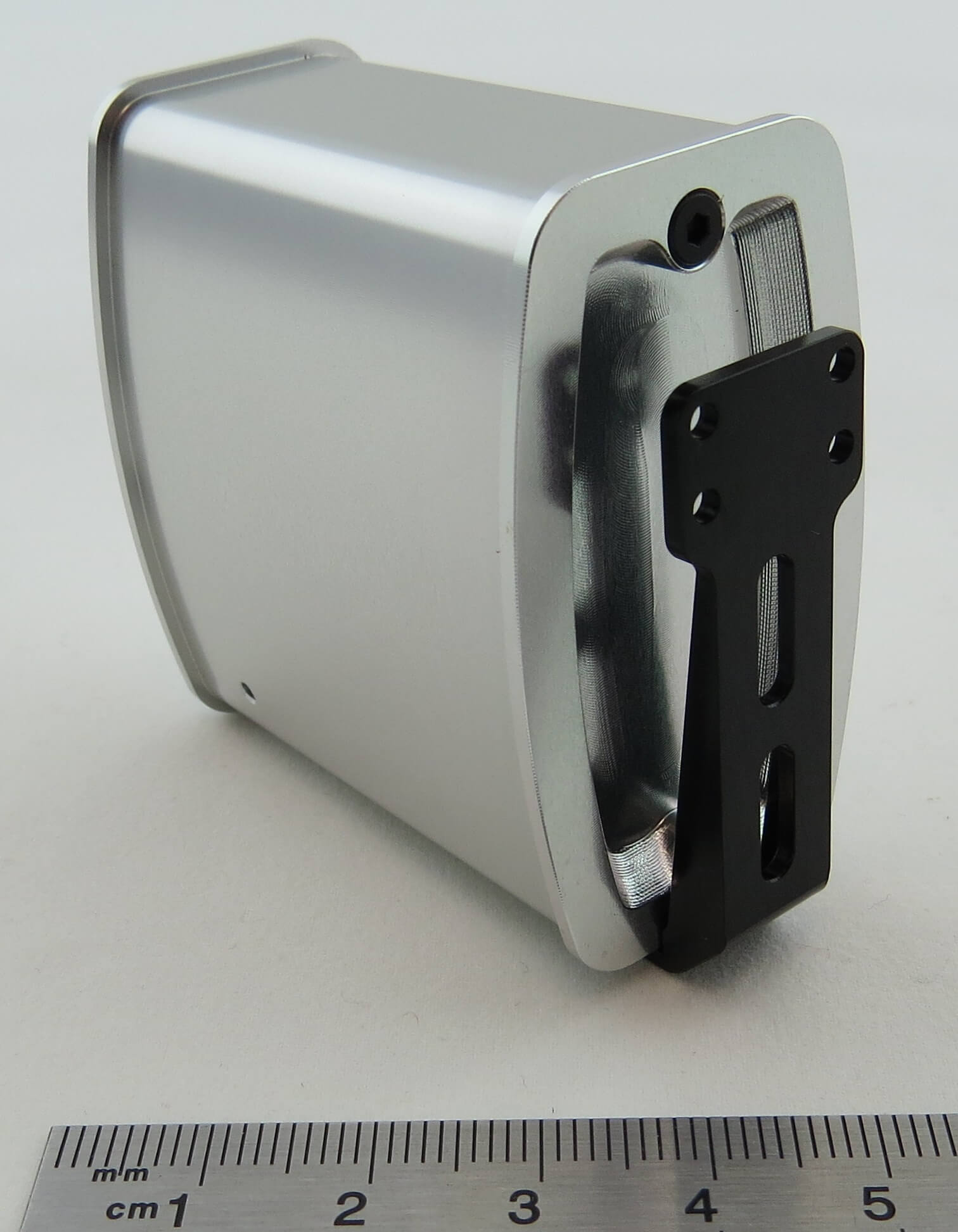 Euro-Auspuff, aus Alu, passend zu Tamiya-Fahrwerken. Mit Rahmenhalterung, aus Alu.