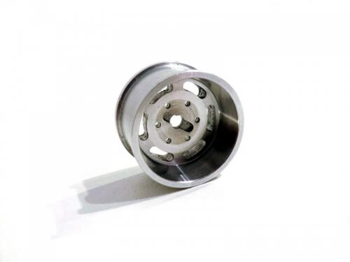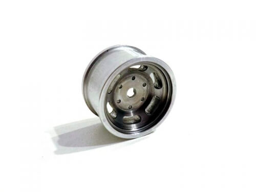 1 Felge (Alu), Langloch-Motiv für Jeep-Reifen (Artikel 6620), 1 Stück. Durchmesser 24,5mm, Breite 14mm, Zentral Bohrung. Rückseitiges Langloch 1,5x7mm für Mitnehmer.