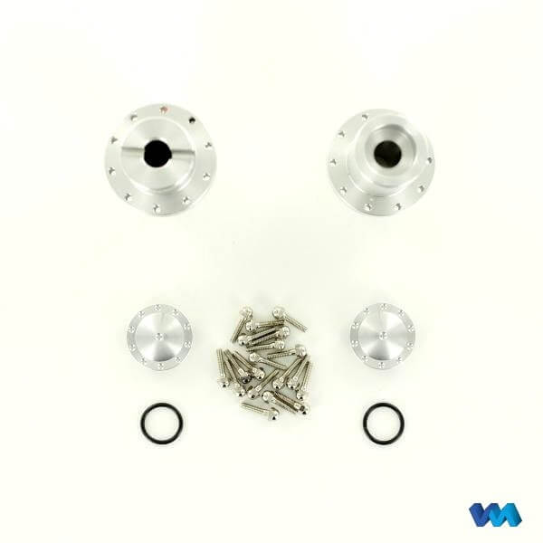 Felgenadapter für die selbstsperrenden Hinterachsen (Artikel 10796). Aluminium, Gewinde 1,6mm, Nabenabdeckung mit O-Ring zur leichten Demontage. Passend zu den Alu- und Kunststoff-Felgen mit 22mm Lochkreis von Veroma oder Seitz.