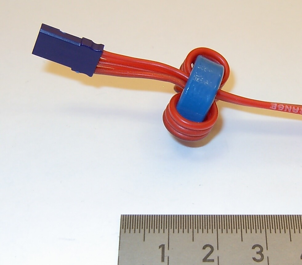 1 Ferritring. Material T38. Außen: 16mm. Innen: 9,6mm. Dicke: 6,3mm. Gewicht:4gr. Ferritring zur Entstörung von Motor- und Empfängerleitungen.