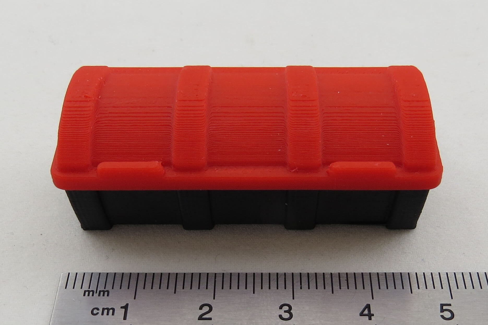 Das Grundgehäuse ist schwarz, der Deckel/die Tür ist rot - jeweils durchgefärbt.