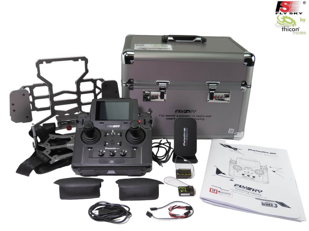 Die 18-Kanal FlySky Paladin PL18 EV mit Touchdisplay und 4D-Kreuzknüppeln bekommen Sie bei uns in der exklusiven und konkurrenzlosen Flagship Edition - das bedeutet das volle Komplett-Paket, ohne den Mund zu voll zu nehmen! Inkl. Wireless Ladestation, Aluminium Senderpult, 12-Kanal Empänger + zusätzlichem 8-Kanal Empfänger im hochwertigen Alukoffer.