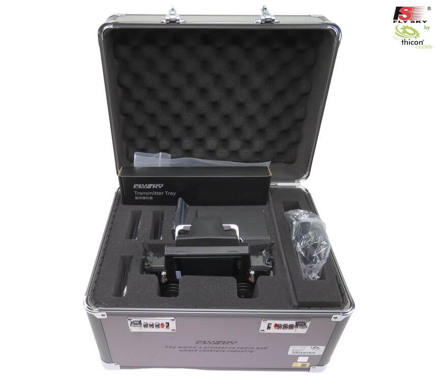 FlySky PL18 EV 4D 18-Kanal Paladin PL18 Computerfernsteuerung Flagship-Edition. Aluminium Sendepult, 12-Kanal Empfänger, Wireless Ladestation, 8 Kanal Empfänger, Aluminium Koffer.