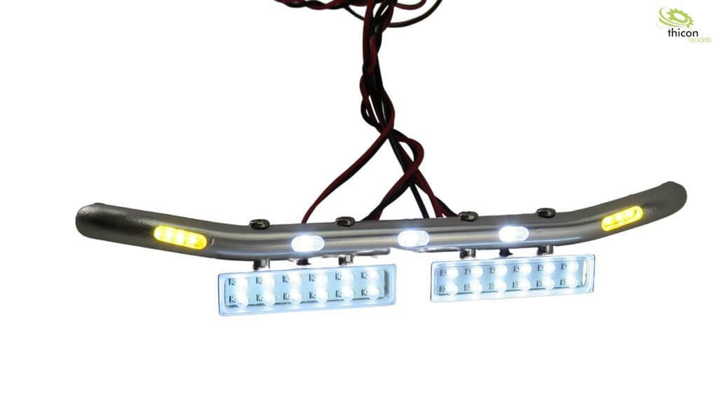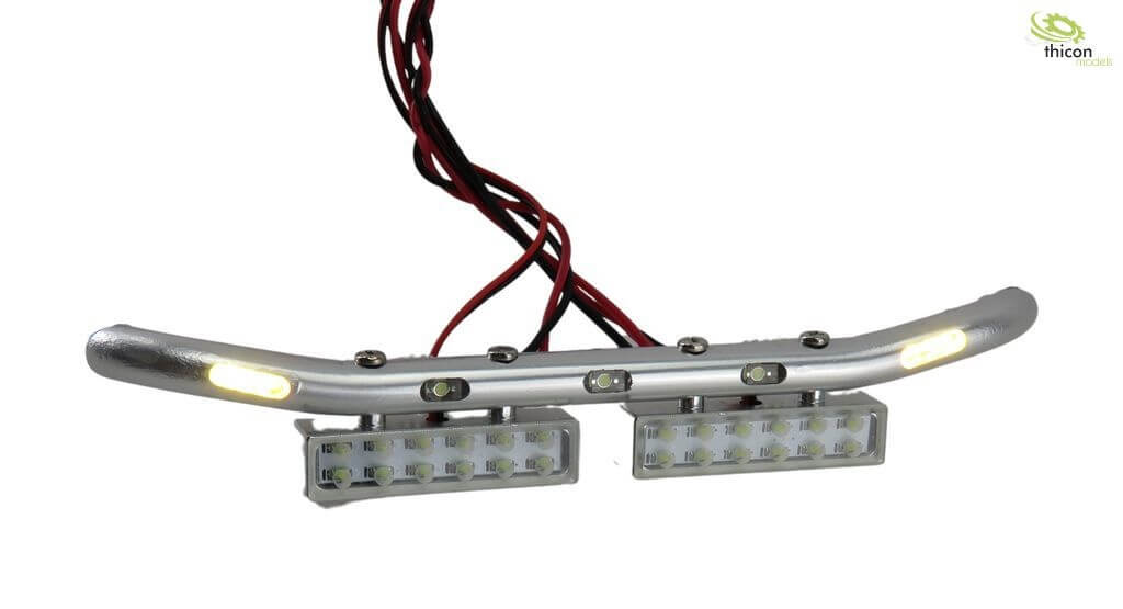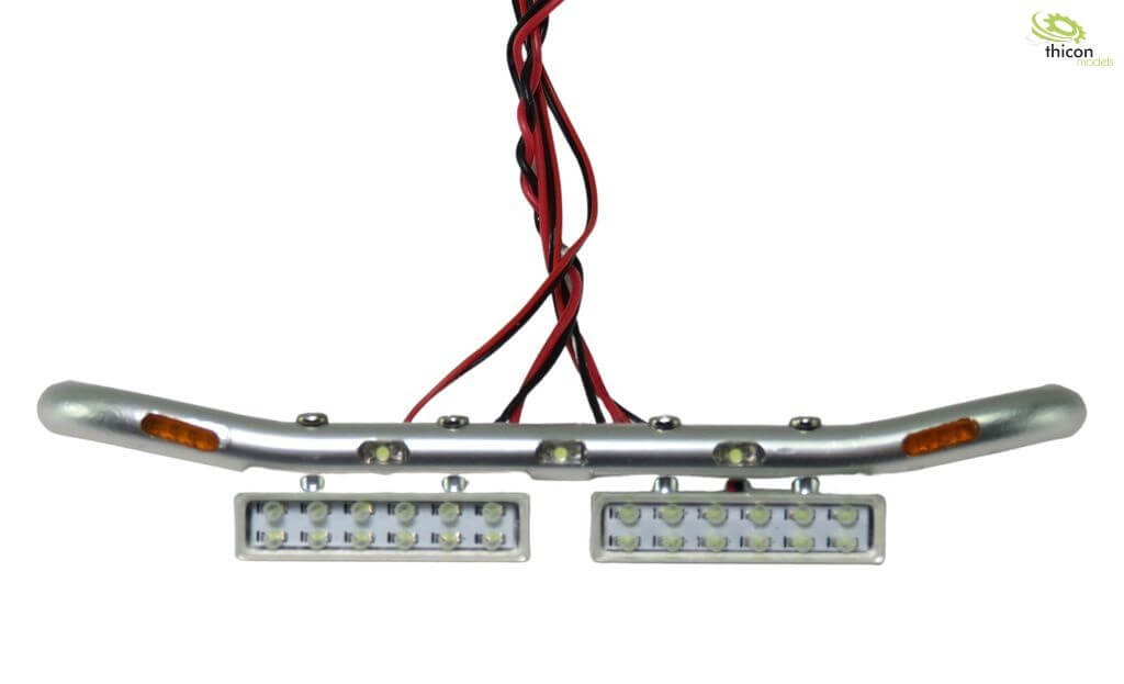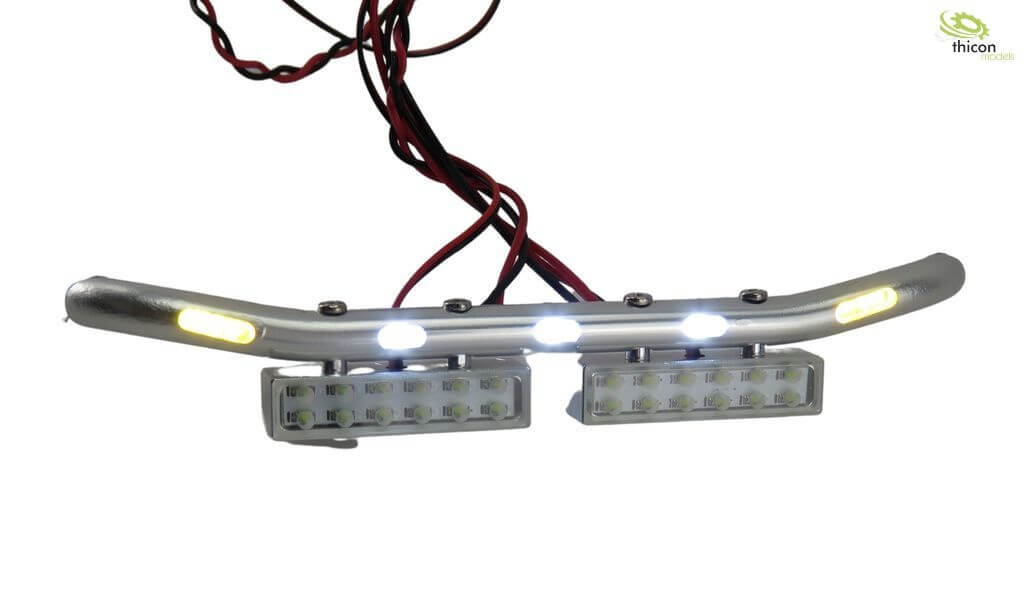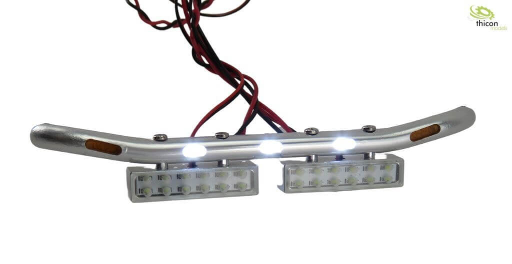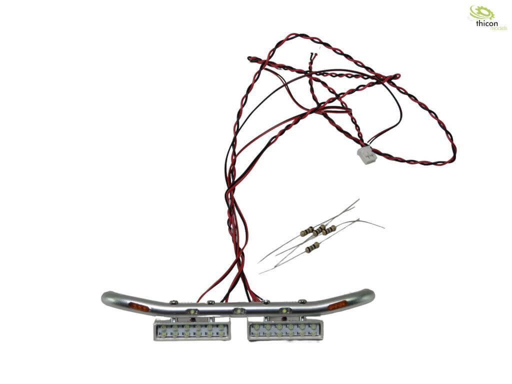 Front-Lampenbügel mit LED aus Metall Getrennt schaltbar 2x LED gelb 3x LED weiß 2x Scheinwerfer 90mm breit Durchmesser 5mm LED: 3,2V, 20mA Inkl. Widerstände