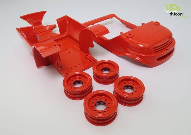 Bausatz Gabelstapler Linde-rot pulverbeschichtet Antrieb mit Motor und Regler Lenkservo Hydraulikpumpe brushless mit Regler Zweifach-Steuerventil mit Servos Anbauteile Lichtanlage Soundmodul 46-Seiten Bauanleitung