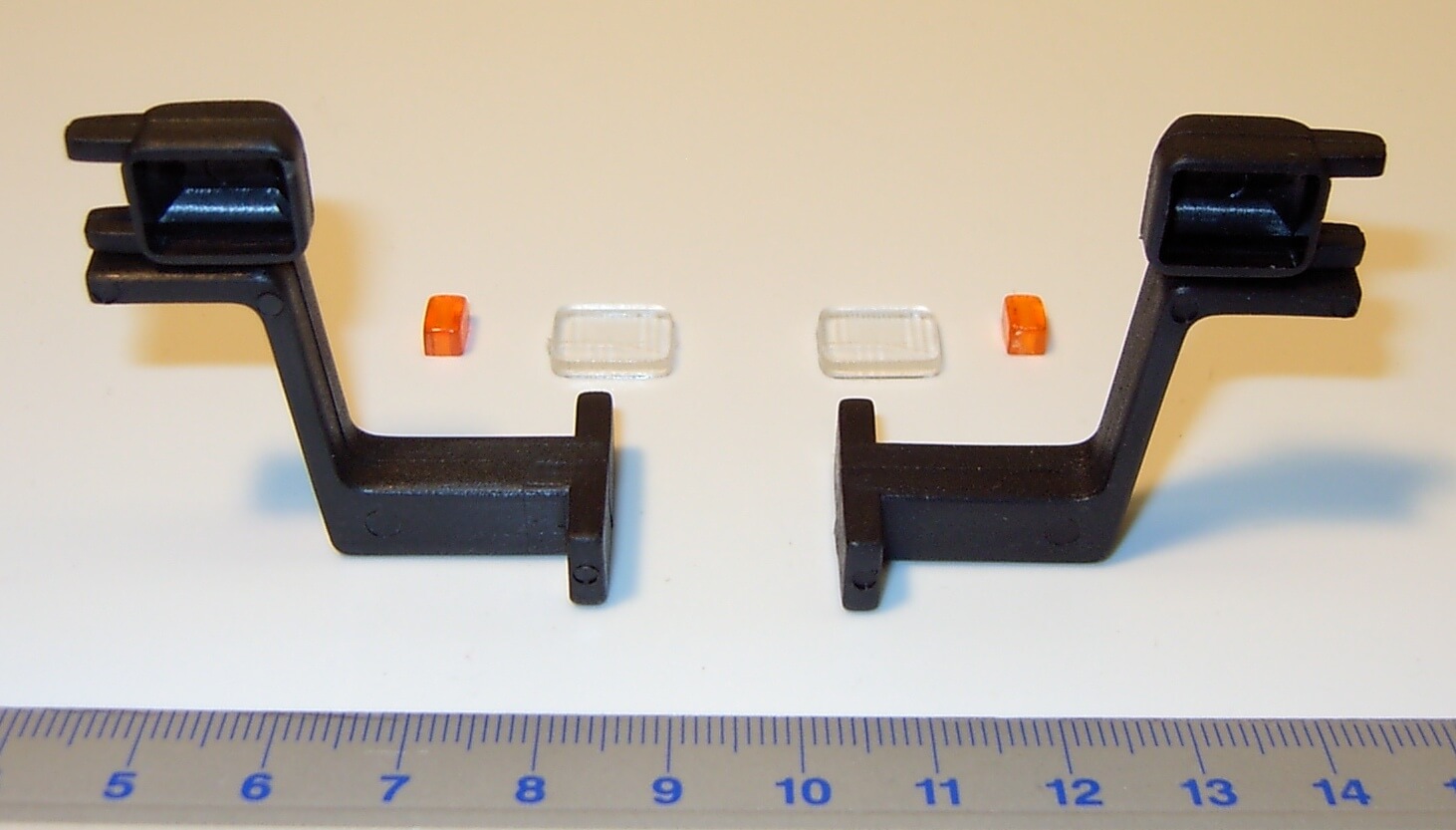 Hauptscheinwerfer Radlader 1:16/1:14,5. Kunststoff, Arm und Scheinwerfergehäuse aus einem Teil. Scheinwerfer- und Blinkerglas zum Aufstecken.(220980).