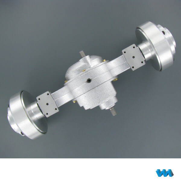 Gesamtuntersetzung 10,16:1. 8-fach kugelgelagert. 4-fach gleitgelagert. Mit dem Durchtrieb kann eine weitere Achse angetrieben werden.