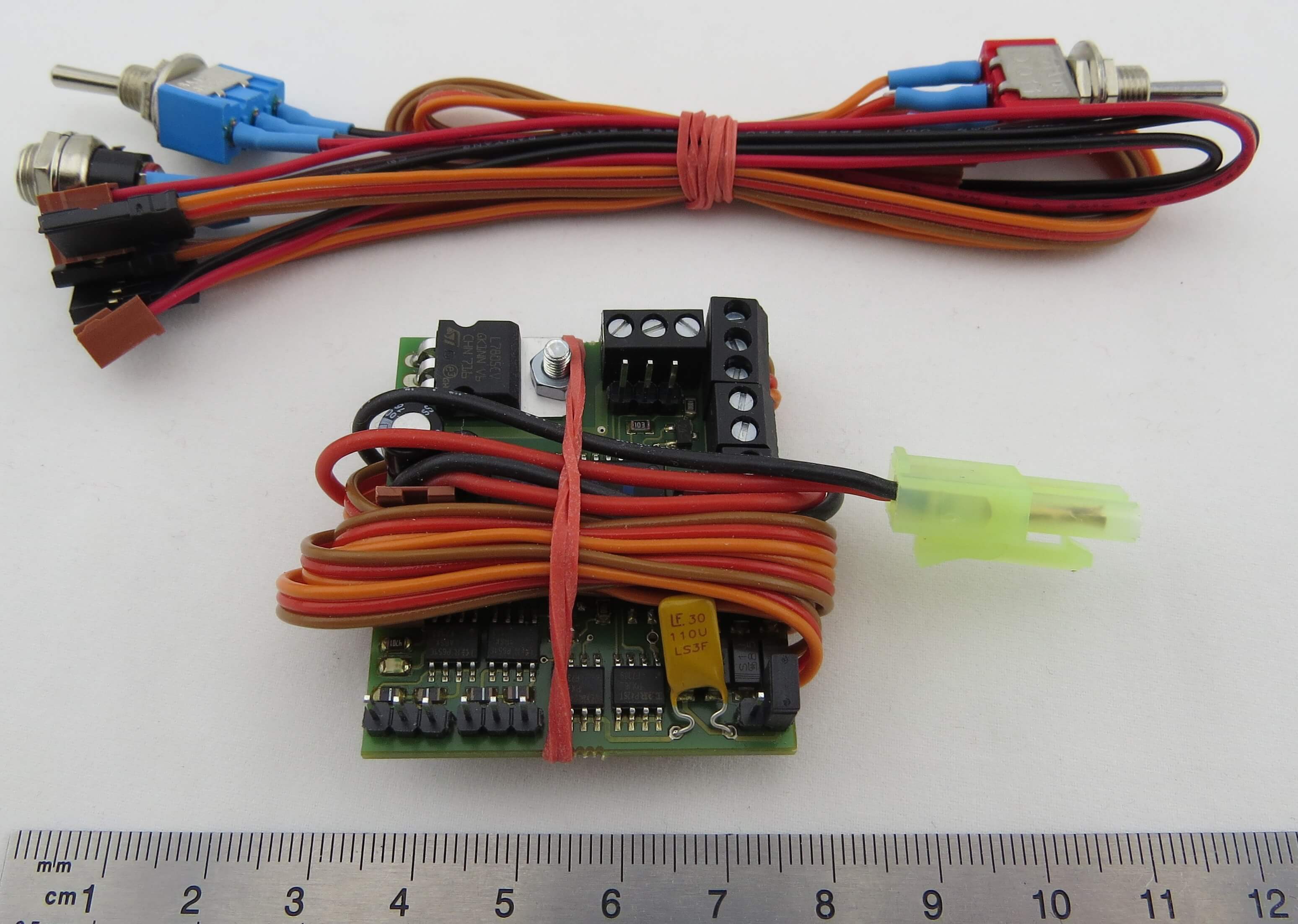 1 Infrarot-Empfänger als Ergänzung zur MFC-01/03 von Tamiya. Mit IR-Empfänger. IR-Empfangsplatine, Kabelsatz. OHNE Beleuchtungs-Platinen. Anleitung. IR-Sender Artikel 7920 notwendig.