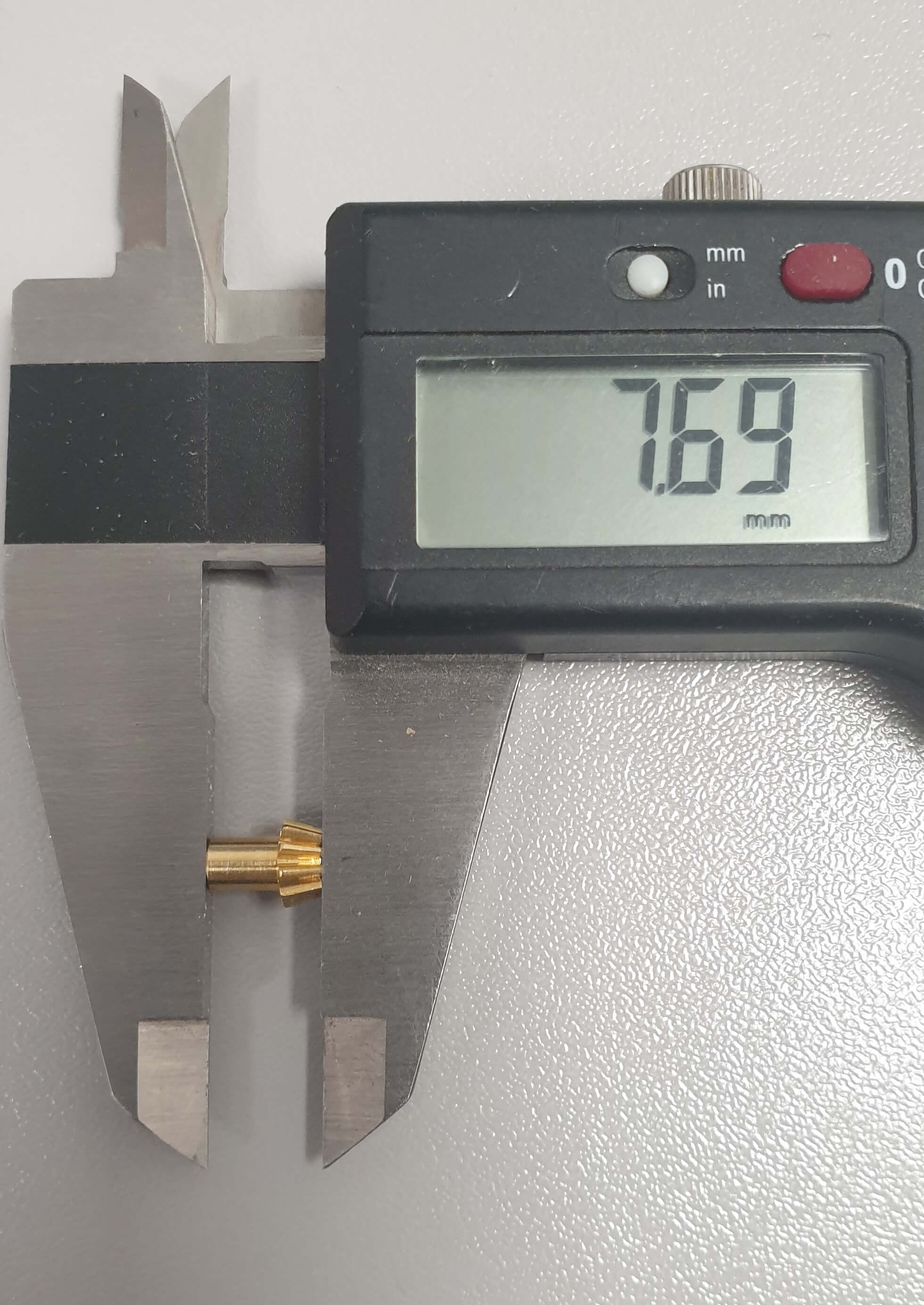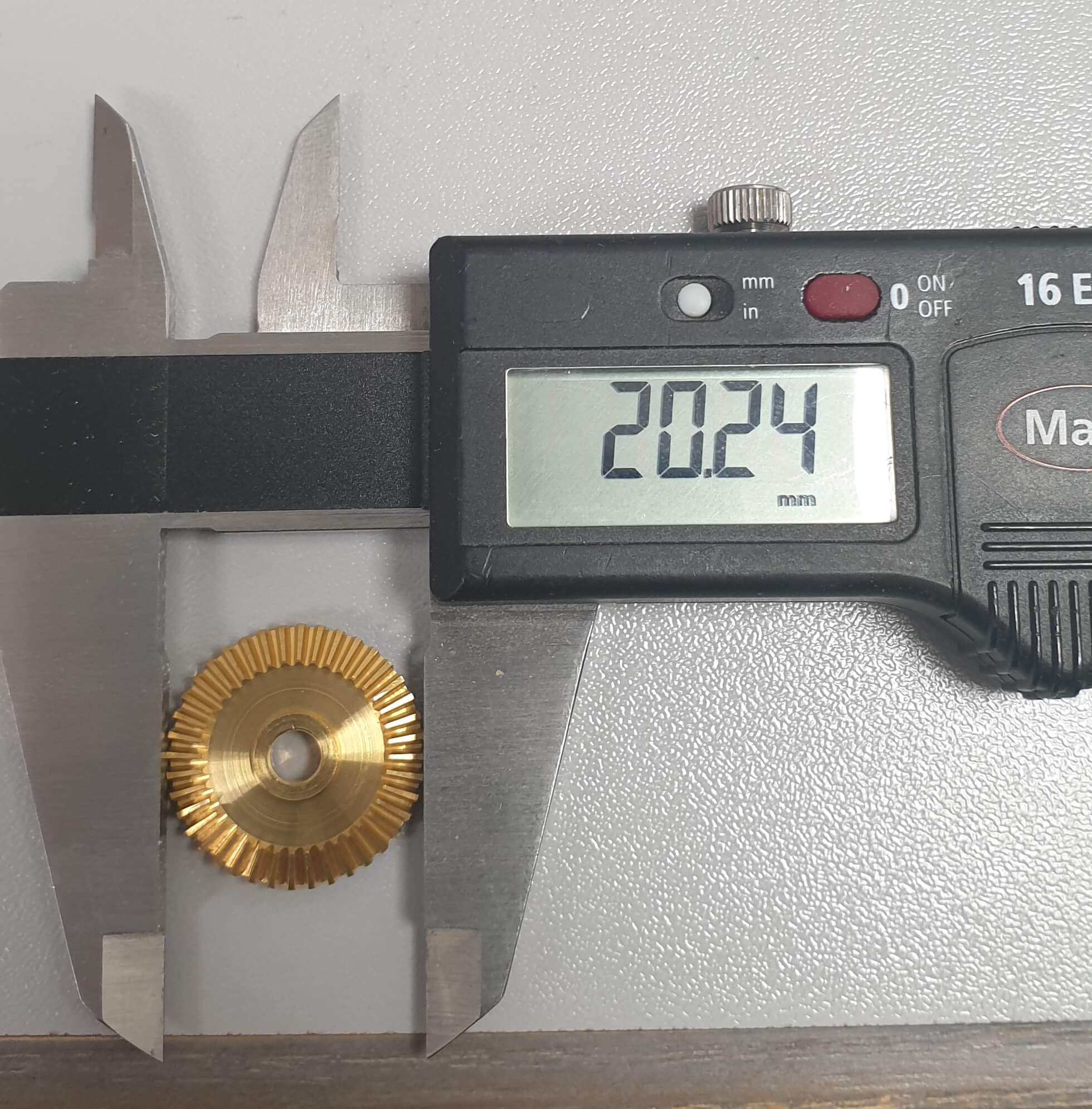 Kegelrad-Satz (1 Paar) 1:4 10 Zähne / 40 Zähne Modul 0,5 Bohrung 2 bzw.4mm aus Messing, Außendurchmesser 6/20mm 5835/04.