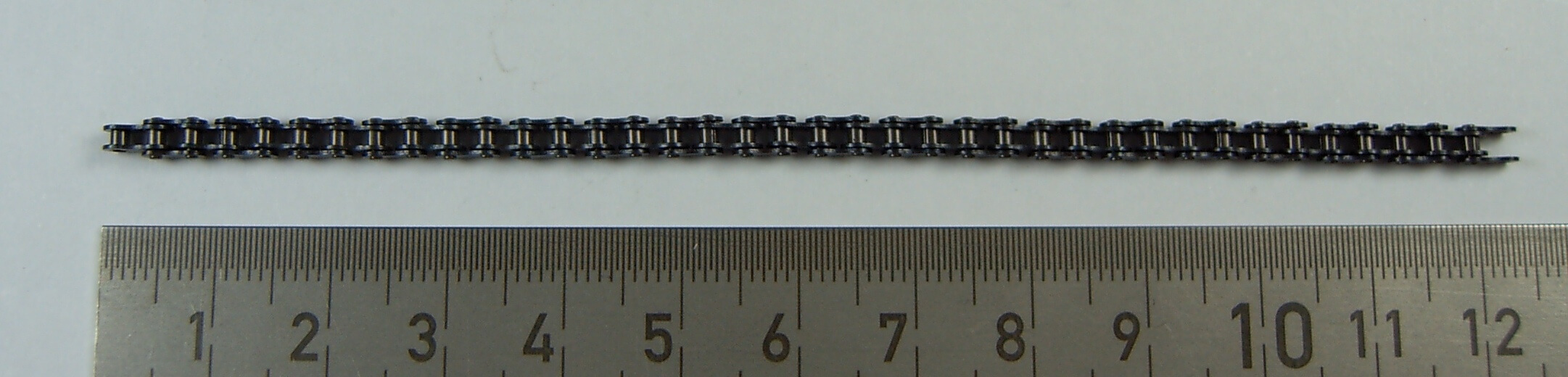 Kette 1/8Zoll 38 Glieder. Länge 120 mm Ersatzteil 8.3 von robbe Gabelstapler. Gesamtbreite 3,7mm. Länge eines Einzel- Gliedes 1/8 Zoll bzw. 3,175mm. Lieferumfang: 2 Ketten-Stücke.