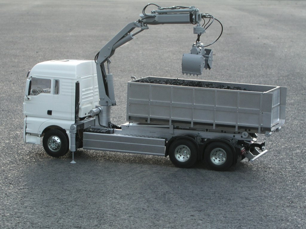 Statten Sie Ihr Modell mit diesem multifunktionellen Modell aus, das den Spaß-und Spielfaktor Ihres Trucks enorm erhöht. An diesem Kran können drei verschiedene Greifer montiert werden. Optional ist es möglich das Fahrzeug mit hydraulischen Stützen auszustatten, um für die nötige Stabilität zu sorgen.