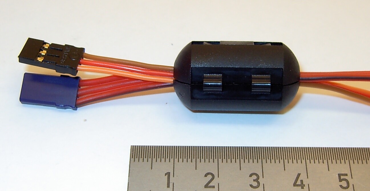 Klappschalen-Ferritring 5,0mm schwarz zum Aufklipsen auf Servokabel zur Unterdrückung von Fremd-Störungen Gesamtlänge 29mm Durchmesser 16mm