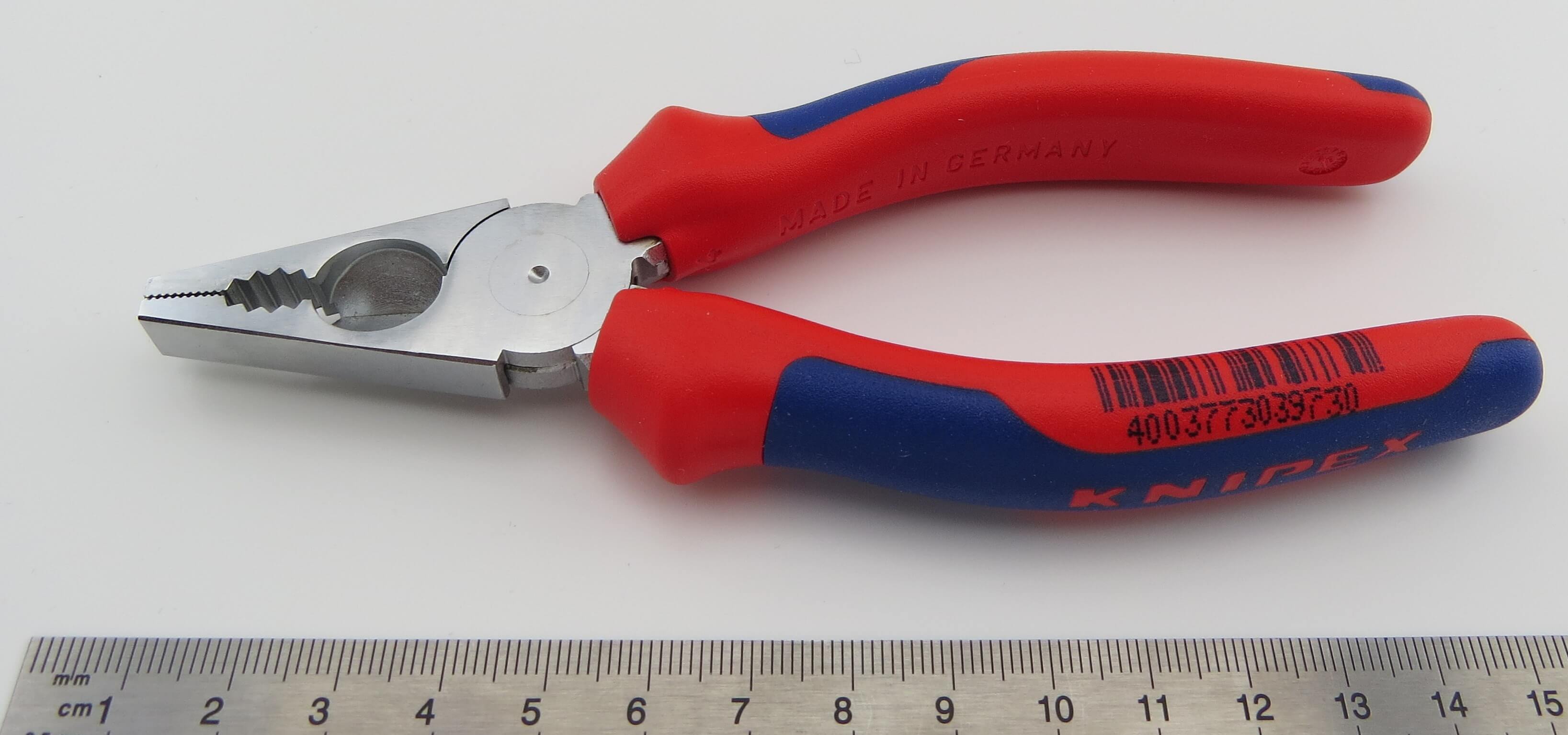 Kombizange, gerade Backen, 140mm lang. Knipex. rot/blau
