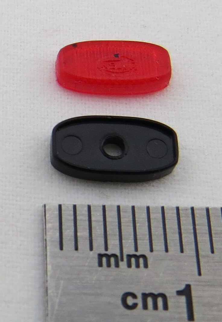 Kontur-Leuchte, rot, Hella, M 1/14. 8,5 x 4mm. Lichtscheibe und Grundkörper werden verklebt. Zur Bestückung mit Einzel-SMDs geeignet.