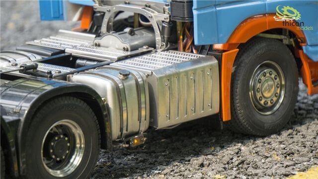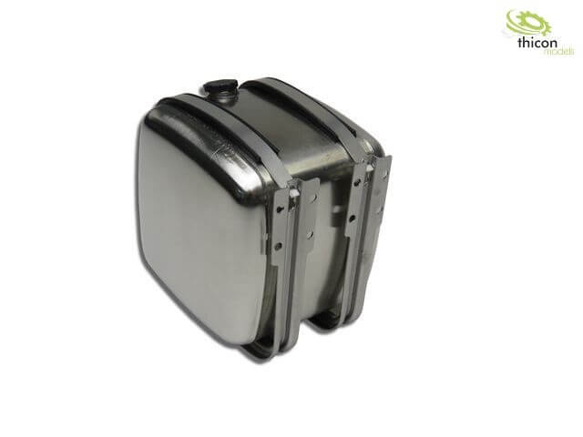 Kraftstofftank 50mm aus V2A mit Tank- Bändern und Rahmenhalterung. Breite: 50mm, Tiefe 55mm, Höhe 52mm ScaleClub.