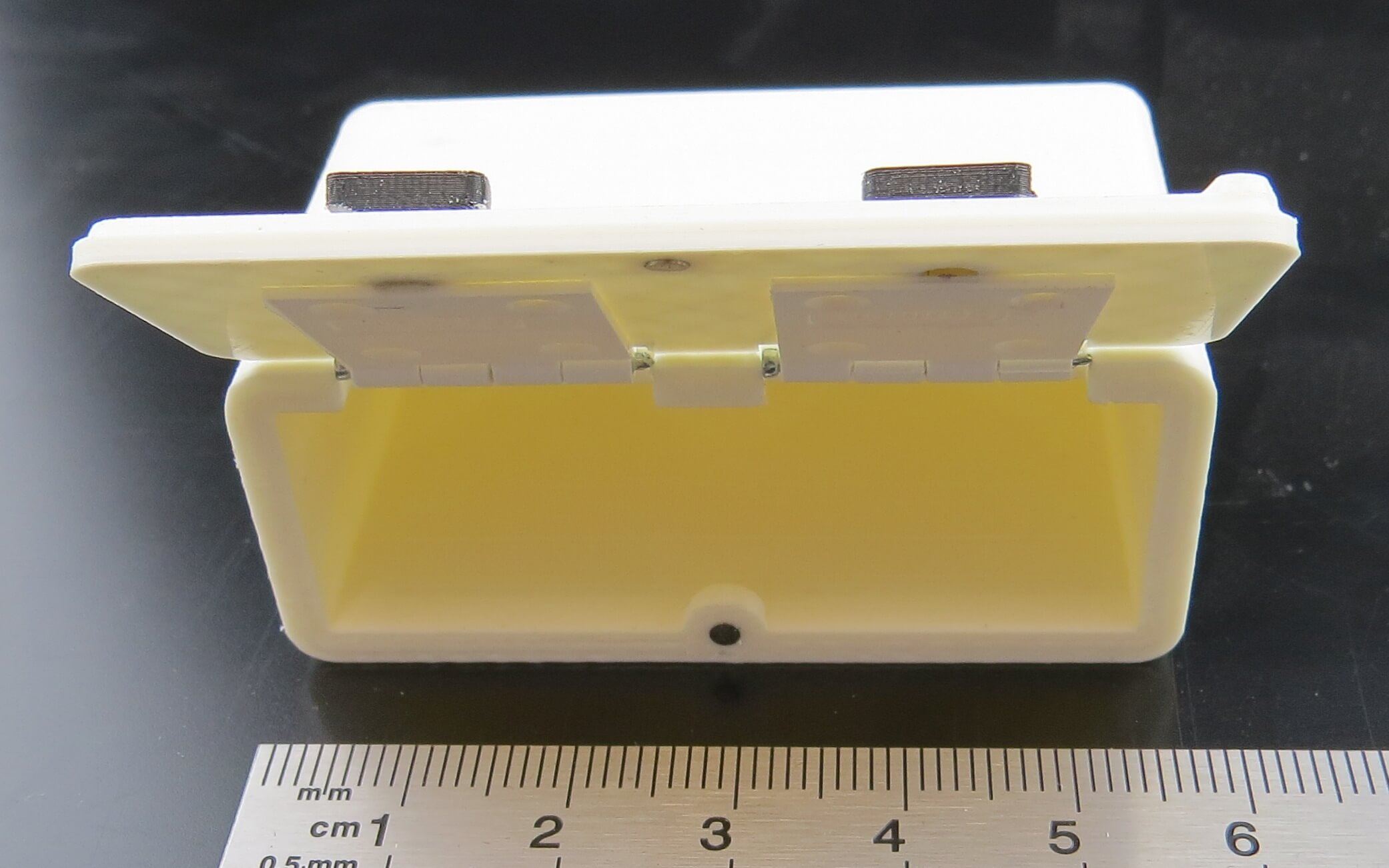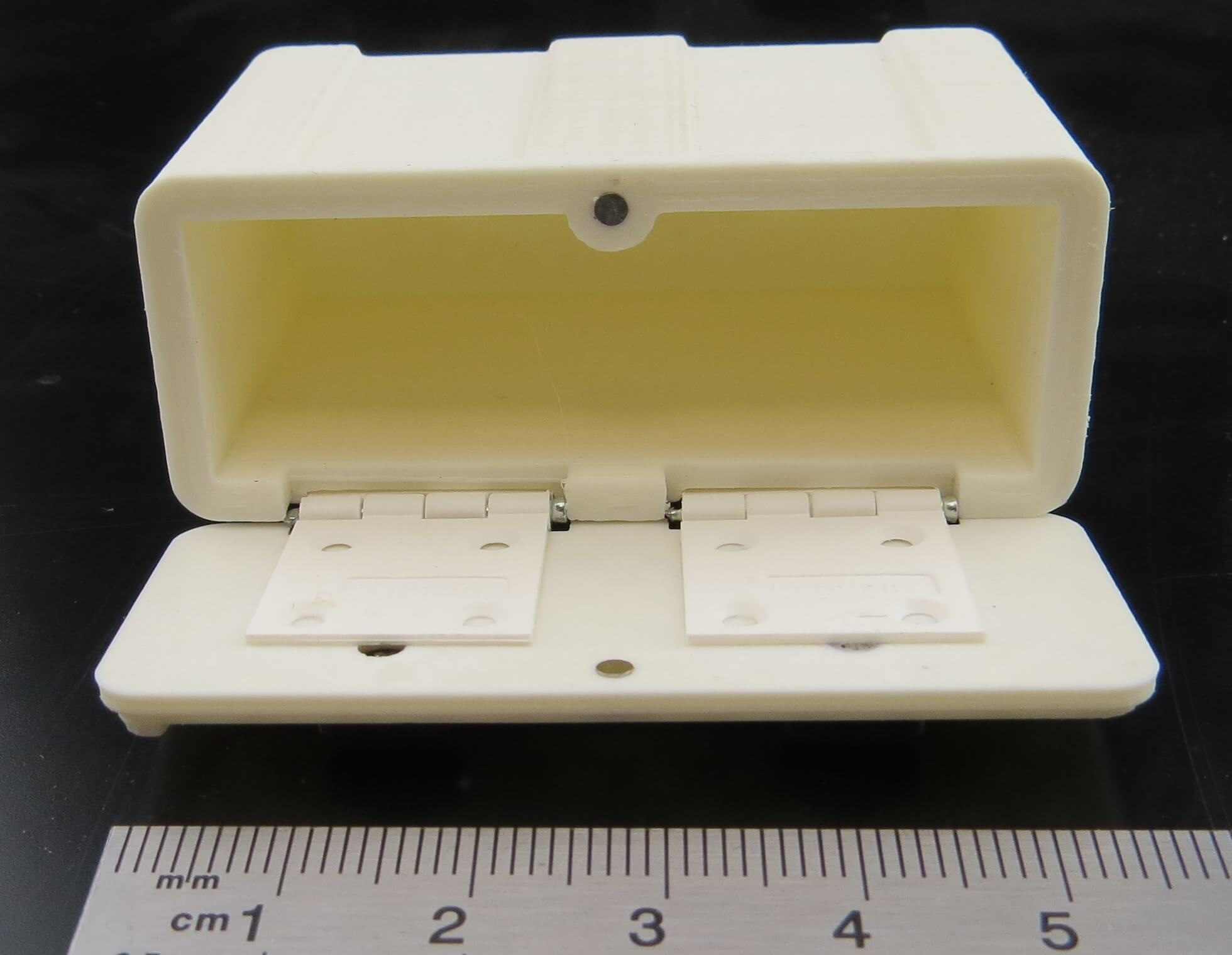 Kunststoff Staukasten mit Deckel 1x Staukasten , 1x Deckel, 2x Griff, 2x Scharnier. PLA 3D gedruckt. Maße: 57x23x37