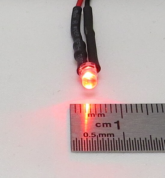 Leuchtfarbe: rot Gehäusefarbe: klar Größe: 3mm Kopfdurchmesser Betriebsspannung: 7,2 - 12V Litzenlänge: ca. 25cm mit Vorwiderstand Abstrahlwinkel: ca. 30° Strom: typ. ca. 20mA