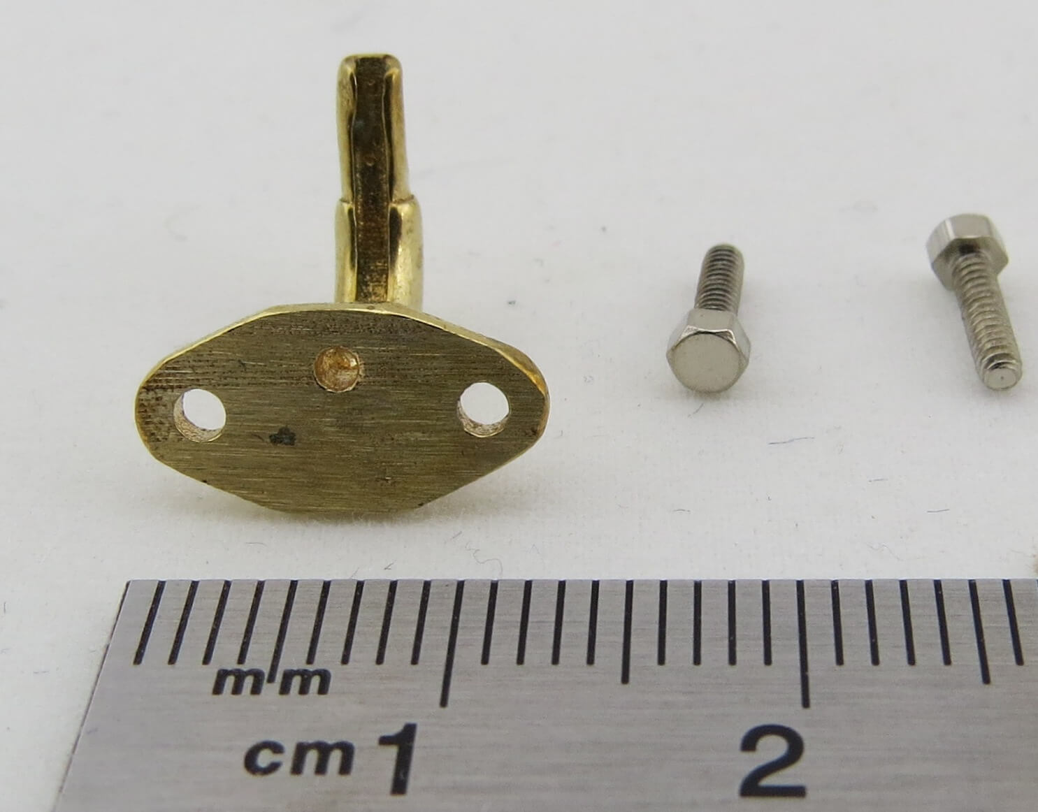 Lampenhalter mit 9 mm Abstand, für Rundumleuchte (Pistenking). Aus Messing- Guß. Mit 2 Befestigungs-Schrauben VA M1,6x6mm.
