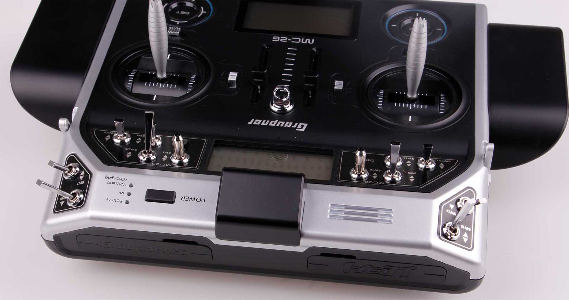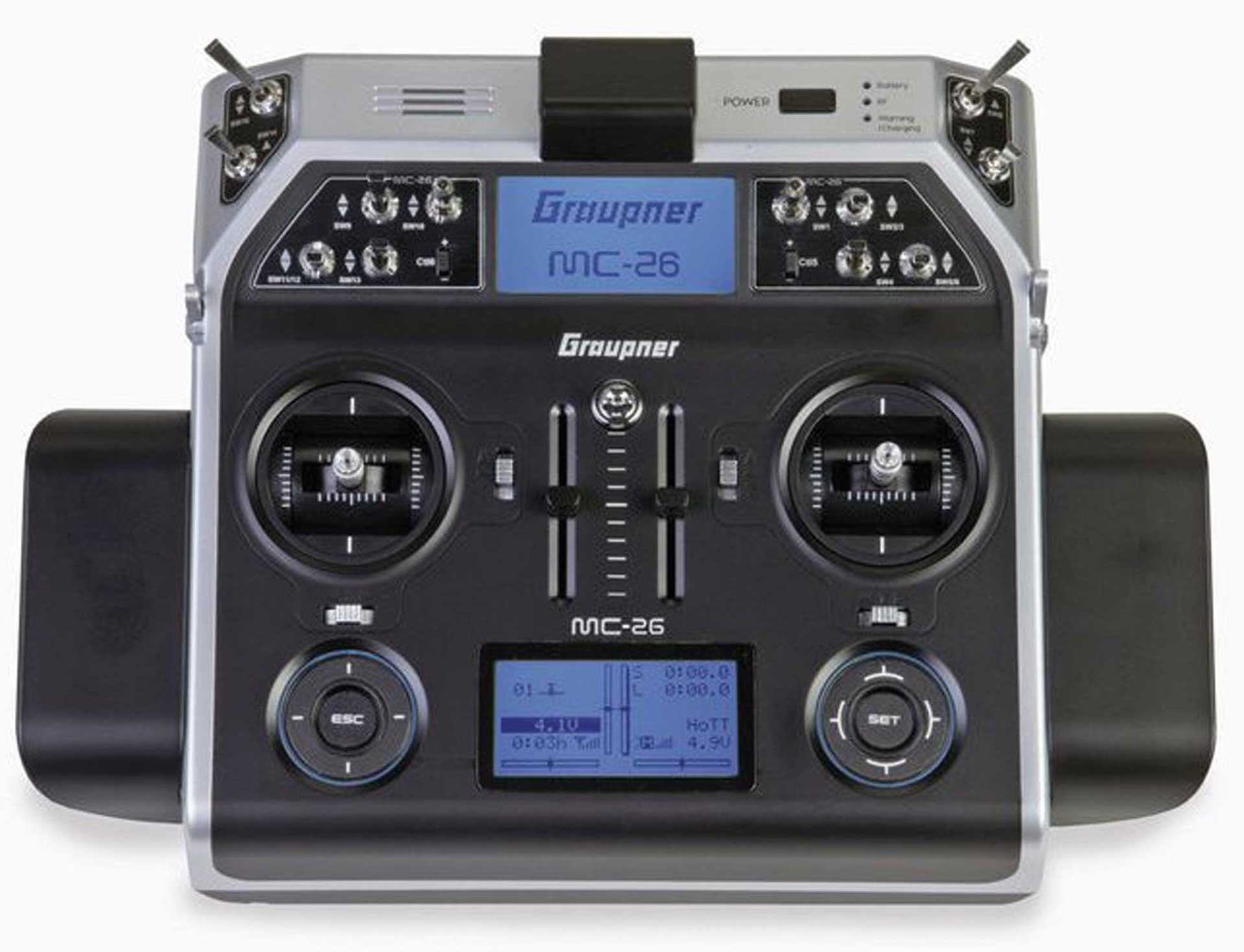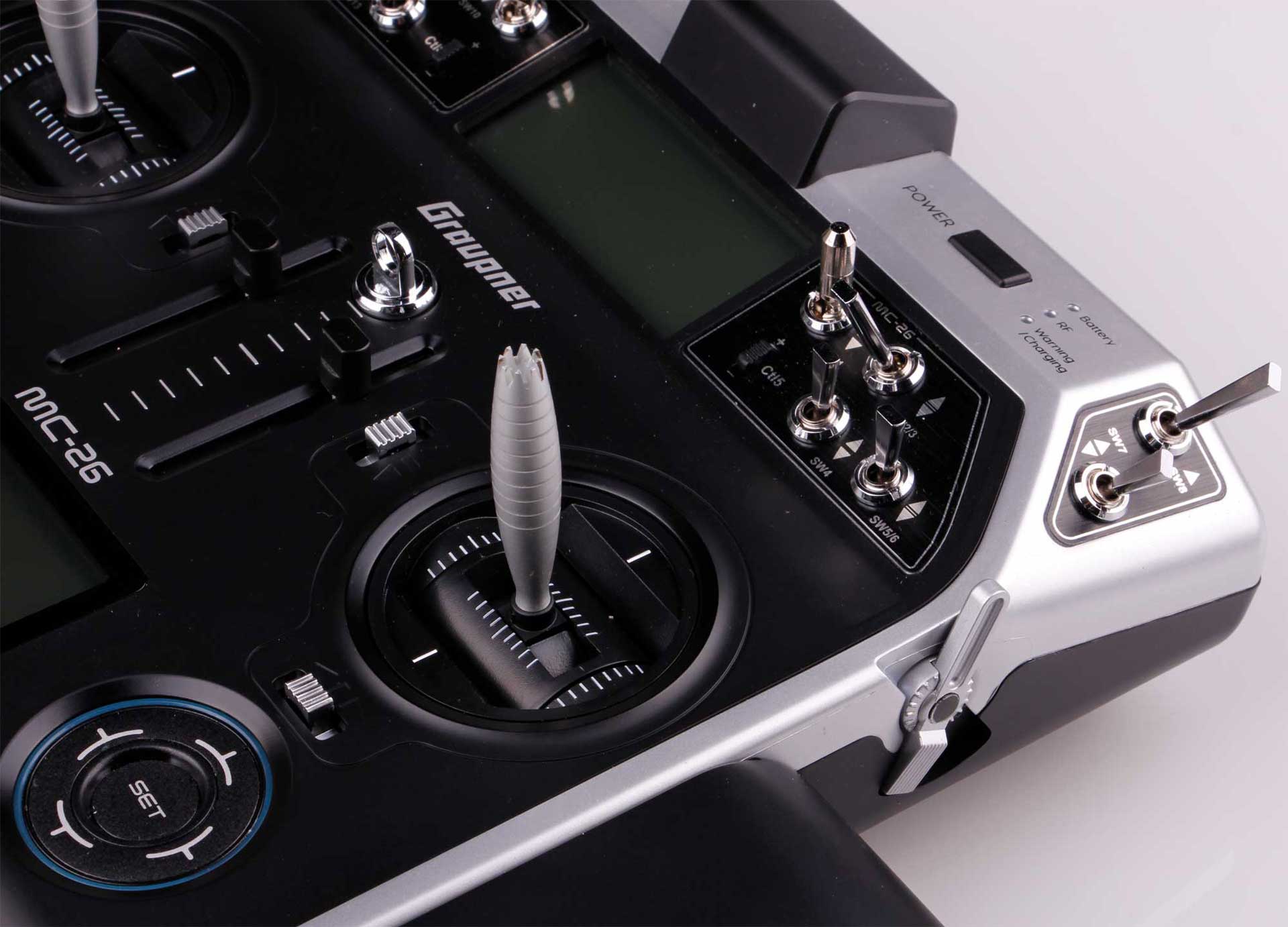 Die Graupner Fernsteuerung mc-26 HoTT mit 2D Steuerknüppeln ist auch für den Funktionsmodellbauer konzipiert.